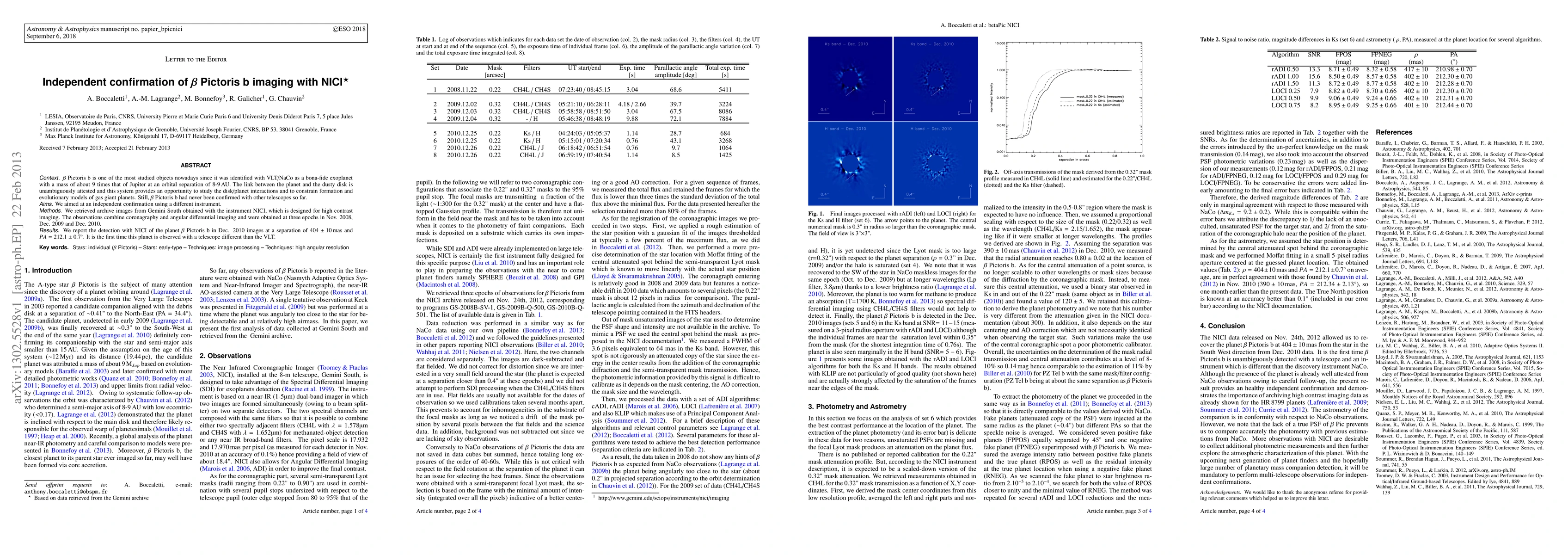 This paper reports the independent confirmation of the exoplanet β Pictoris b using Gemini South's NICI instrument, marking the first observation of the planet with a telescope other than the VLT. The detection was made in December 2010 images, providing additional validation of the planet's existence and characteristics.