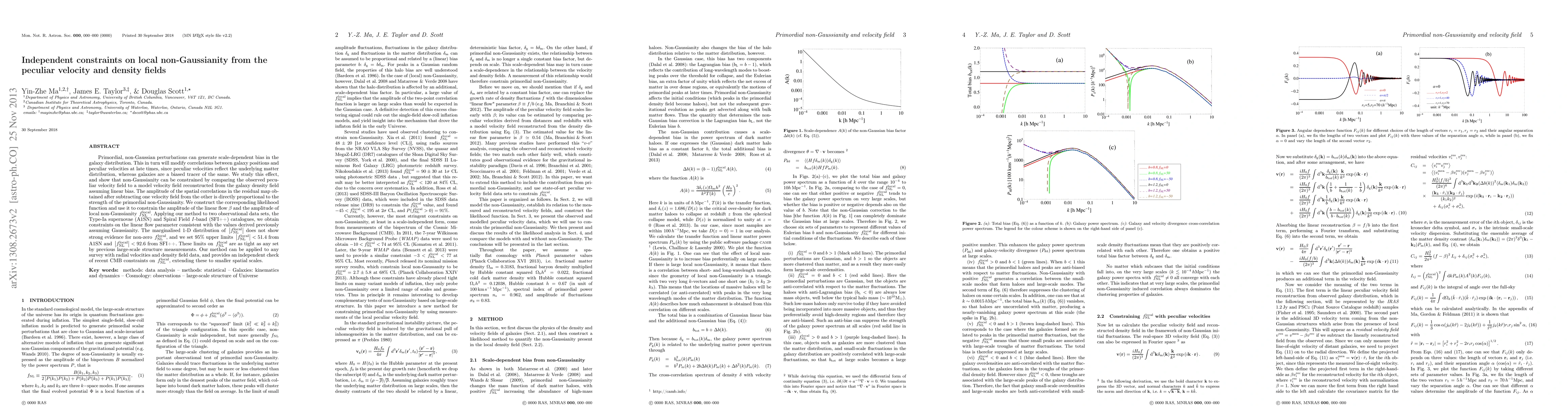 This paper investigates independent constraints on local non-Gaussianity in the early universe by comparing peculiar velocity fields with galaxy density fields. The study finds no strong evidence for non-zero local non-Gaussianity, setting upper limits of $f^{\rm NL}_{\rm local} < 51.4$ and $f^{\rm NL}_{\rm local} < 92.6$ from two observational datasets, consistent with previous CMB constraints.