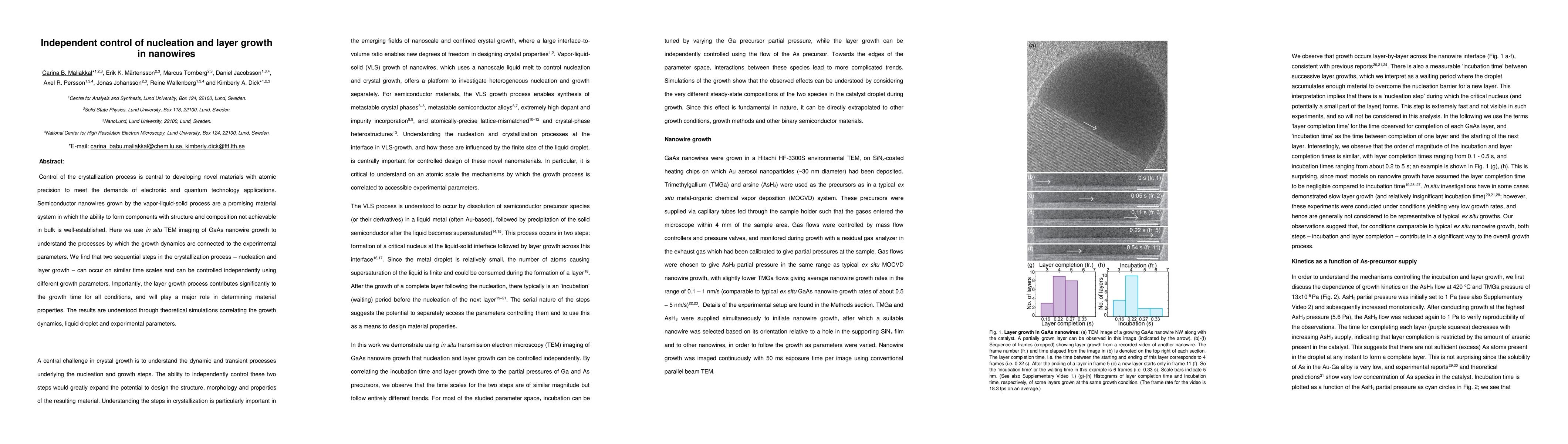 Researchers discovered that nucleation and layer growth in semiconductor nanowires can be controlled independently using different growth parameters, which could lead to the development of novel materials with precise atomic structure.