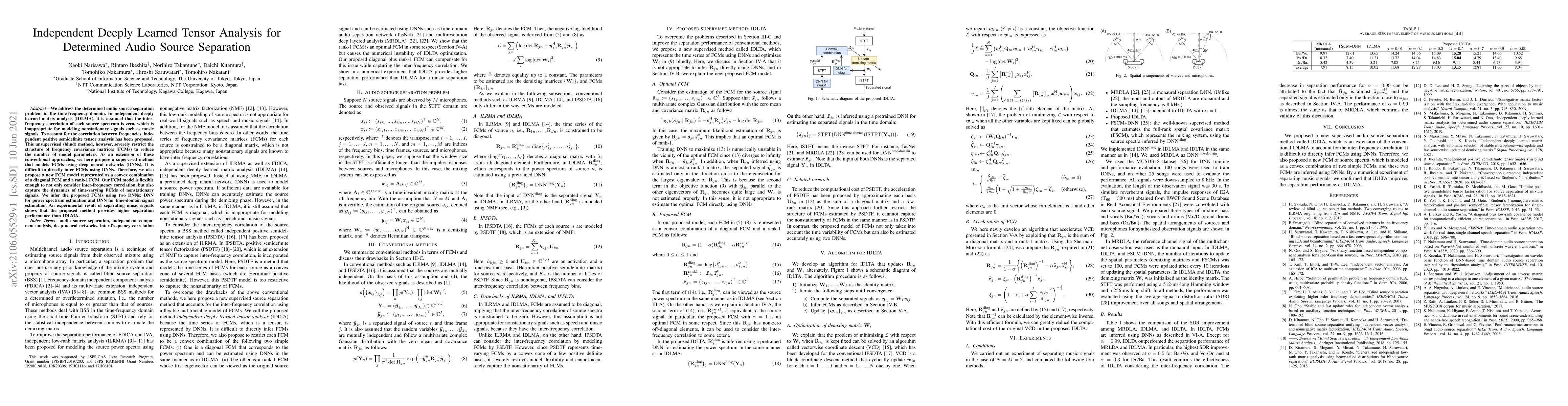We address the determined audio source separation problem in the time-frequency domain. In independent deeply learned matrix analysis (IDLMA), it is assumed that the inter-frequency correlation of each source spectrum is zero, which is inappropriate for modeling nonstationary signals such as music signals. To account for the correlation between frequencies, independent positive semidefinite tensor analysis has been proposed. This unsupervised (blind) method, however, severely restrict the structure of frequency covariance matrices (FCMs) to reduce the number of model parameters. As an extension of these conventional approaches, we here propose a supervised method that models FCMs using deep neural networks (DNNs). It is difficult to directly infer FCMs using DNNs. Therefore, we also propose a new FCM model represented as a convex combination of a diagonal FCM and a rank-1 FCM. Our FCM model is flexible enough to not only consider inter-frequency correlation, but also capture the dynamics of time-varying FCMs of nonstationary signals. We infer the proposed FCMs using two DNNs: DNN for power spectrum estimation and DNN for time-domain signal estimation. An experimental result of separating music signals shows that the proposed method provides higher separation performance than IDLMA.
