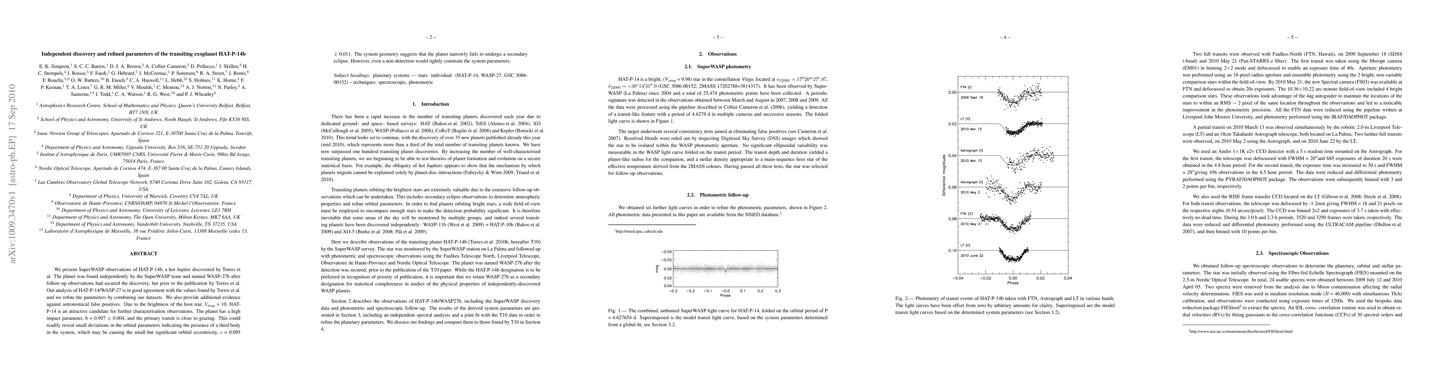 We present SuperWASP observations of HAT-P-14b, a hot Jupiter discovered by Torres et al. The planet was found independently by the SuperWASP team and named WASP-27b after follow-up observations had secured the discovery, but prior to the publication by Torres et al. Our analysis of HAT-P-14/WASP-27 is in good agreement with the values found by Torres et al. and we refine the parameters by combining our datasets. We also provide additional evidence against astronomical false positives. Due to the brightness of the host star, V = 10, HAT-P-14 is an attractive candidate for further characterisation observations. The planet has a high impact parameter, b = 0.907 +/- 0.004, and the primary transit is close to grazing. This could readily reveal small deviations in the orbital parameters indicating the presence of a third body in the system, which may be causing the small but significant orbital eccentricity, e = 0.095 +/- 0.011. The system geometry suggests that the planet narrowly fails to undergo a secondary eclipse. However, even a non-detection would tightly constrain the system parameters.