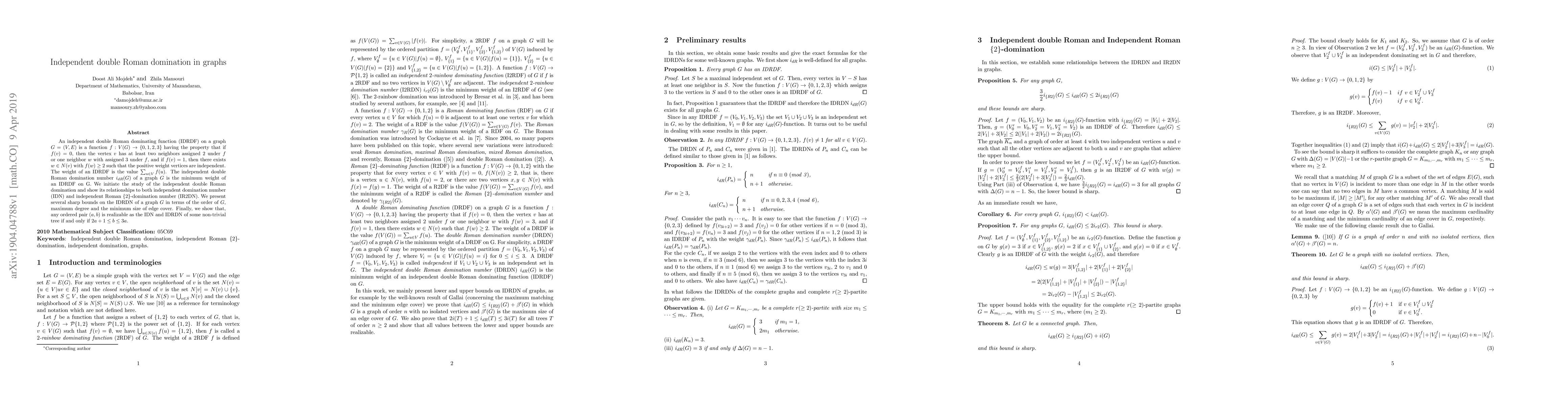 The paper introduces the concept of independent double Roman domination and establishes various relationships and bounds related to this concept, contributing to the theoretical framework of domination in graph theory.