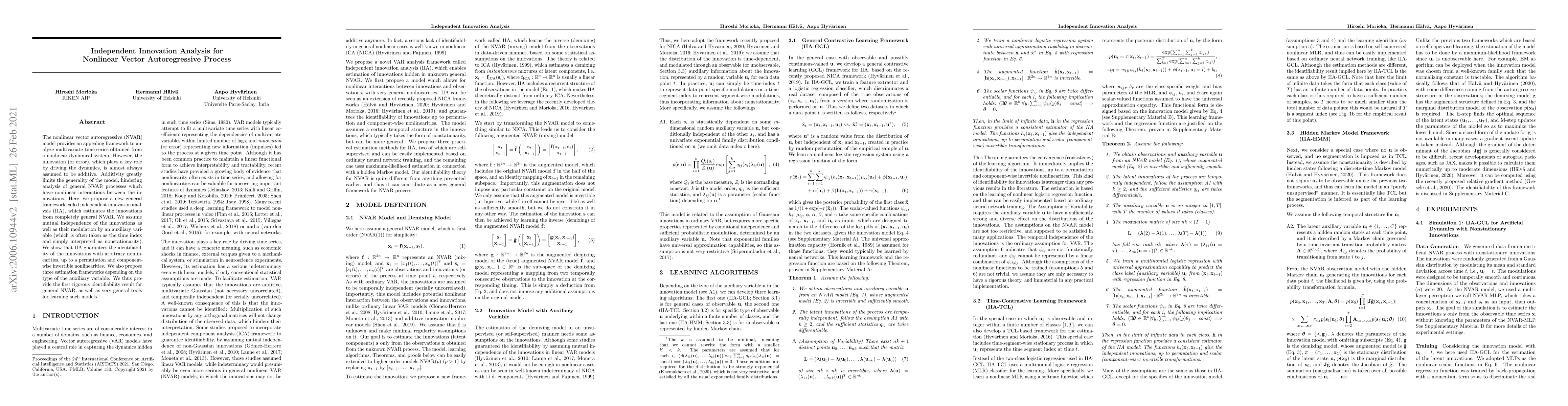 This paper introduces independent innovation analysis (IIA) to estimate innovations from general nonlinear vector autoregressive (NVAR) processes, overcoming the limitations of traditional additive innovation assumptions. IIA ensures the identifiability of innovations with arbitrary nonlinearities and proposes three estimation frameworks based on different auxiliary variables.