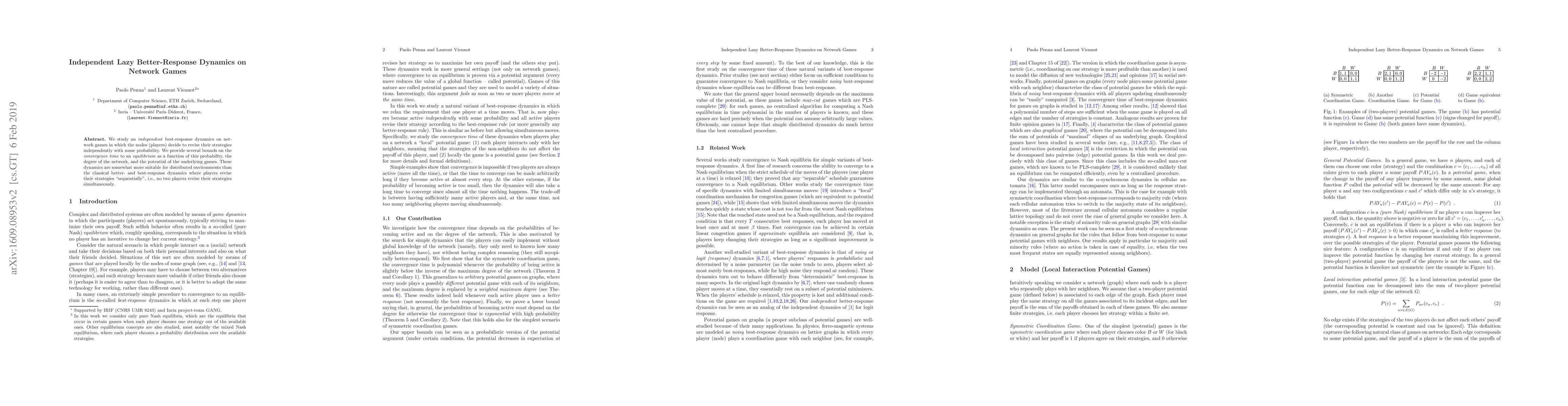 We study an independent best-response dynamics on network games in which the nodes (players) decide to revise their strategies independently with some probability. We provide several bounds on the convergence time to an equilibrium as a function of this probability, the degree of the network, and the potential of the underlying games. These dynamics are somewhat more suitable for distributed environments than the classical better- and best-response dynamics where players revise their strategies "sequentially", i.e., no two players revise their strategies simultaneously.