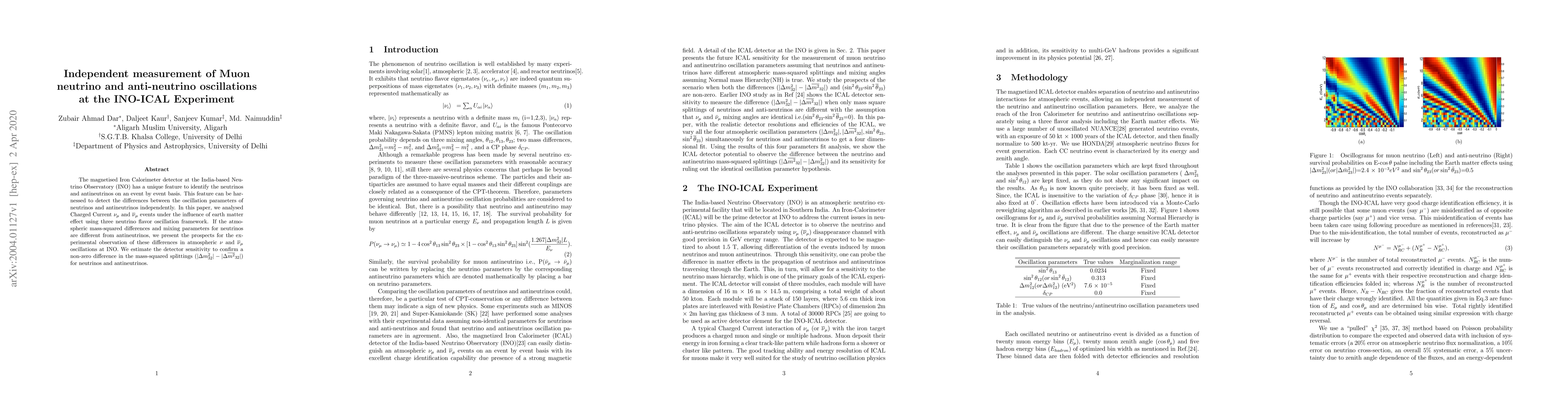 This paper investigates the potential of the INO-ICAL detector to independently measure muon neutrino and anti-neutrino oscillations, analyzing Charged Current events under the influence of the earth matter effect. The study estimates the detector's capability to confirm differences in atmospheric mass-squared splittings between neutrinos and antineutrinos.