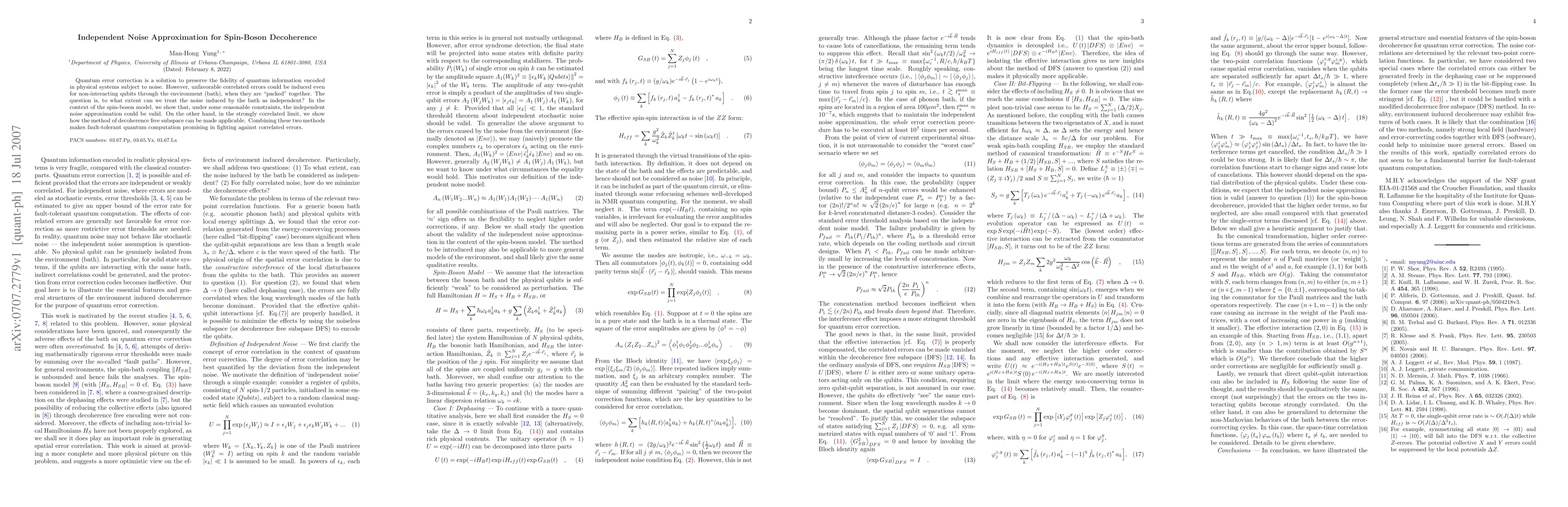Quantum error correction is a solution to preserve the fidelity of quantum information encoded in physical systems subject to noise. However, unfavorable correlated errors could be induced even for non-interacting qubits through the environment (bath), when they are "packed" together. The question is, to what extent can we treat the noise induced by the bath as independent? In the context of the spin-boson model, we show that, under some reasonable constraints, the independent noise approximation could be valid. On the other hand, in the strongly correlated limit, we show how the method of decoherence free subspace can be made applicable. Combining these two methods makes fault-tolerant quantum computation promising in fighting against correlated errors.