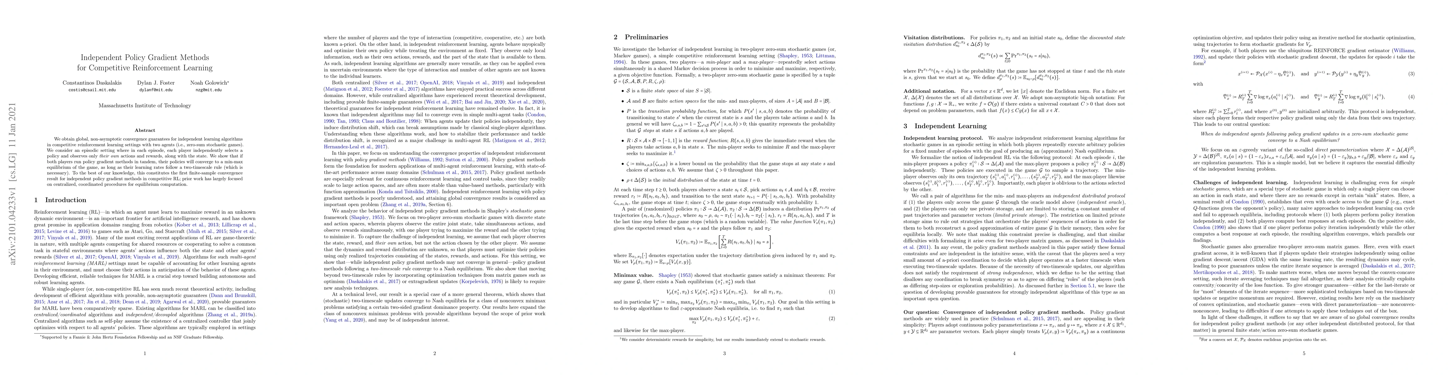 This paper provides the first non-asymptotic convergence guarantees for independent policy gradient methods in competitive reinforcement learning, specifically for two-agent zero-sum games. It demonstrates that tandem use of policy gradient methods under a two-timescale learning rate rule leads to convergence to a min-max equilibrium.