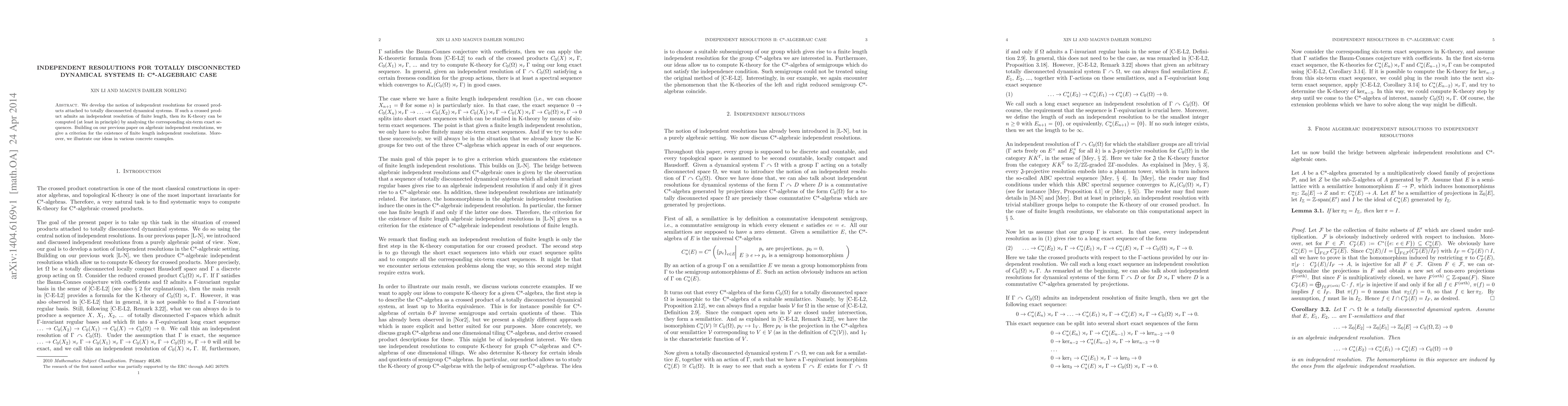 We develop the notion of independent resolutions for crossed products attached to totally disconnected dynamical systems. If such a crossed product admits an independent resolution of finite length, then its K-theory can be computed (at least in principle) by analysing the corresponding six-term exact sequences. Building on our previous paper on algebraic independent resolutions, we give a criterion for the existence of finite length independent resolutions. Moreover, we illustrate our ideas in various concrete examples.