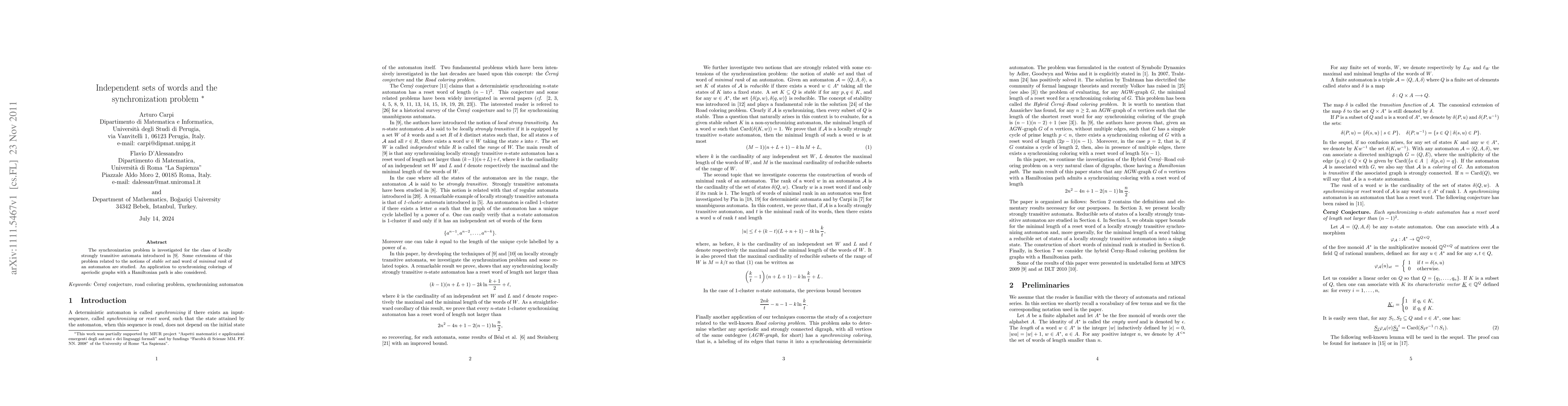 This paper explores the synchronization problem for locally strongly transitive automata, examining extensions related to stable sets and minimal rank words, and applies these findings to synchronizing colorings of aperiodic graphs with Hamiltonian paths.