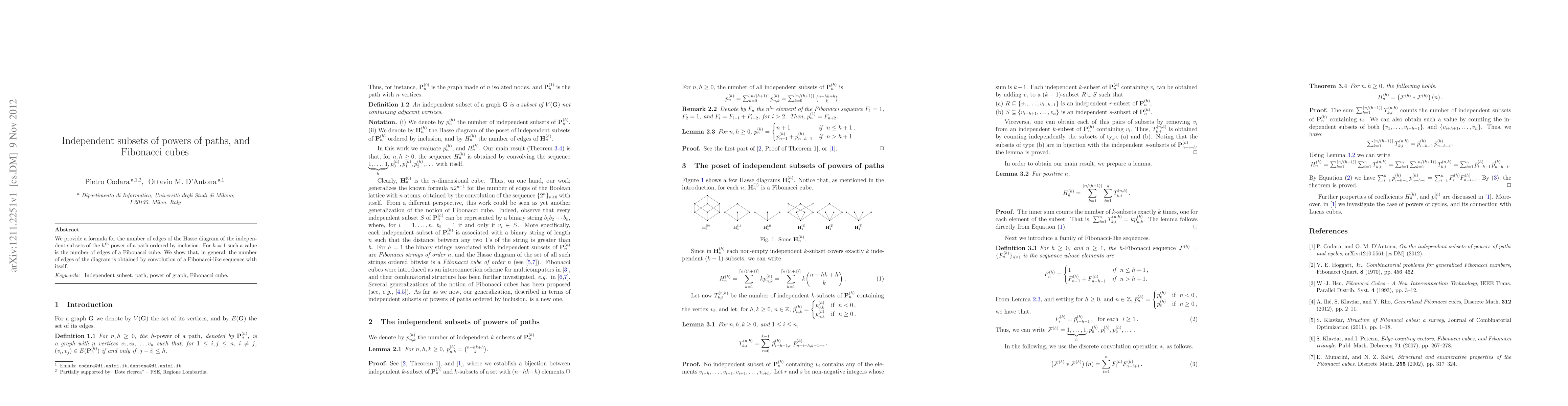 We provide a formula for the number of edges of the Hasse diagram of the independent subsets of the h-th power of a path ordered by inclusion. For h=1 such a value is the number of edges of a Fibonacci cube. We show that, in general, the number of edges of the diagram is obtained by convolution of a Fibonacci-like sequence with itself.