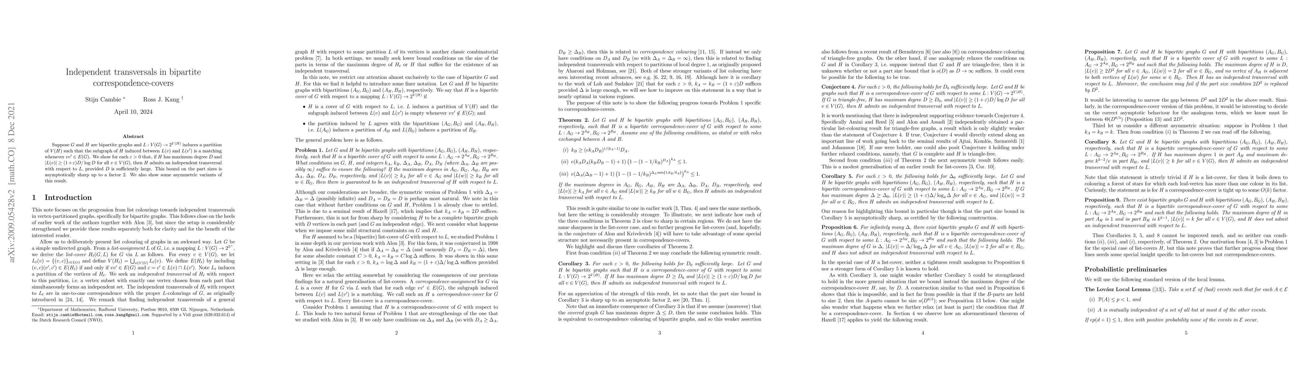 Stijn Cambie, Penny Haxell, Ross J. Kang et al.
