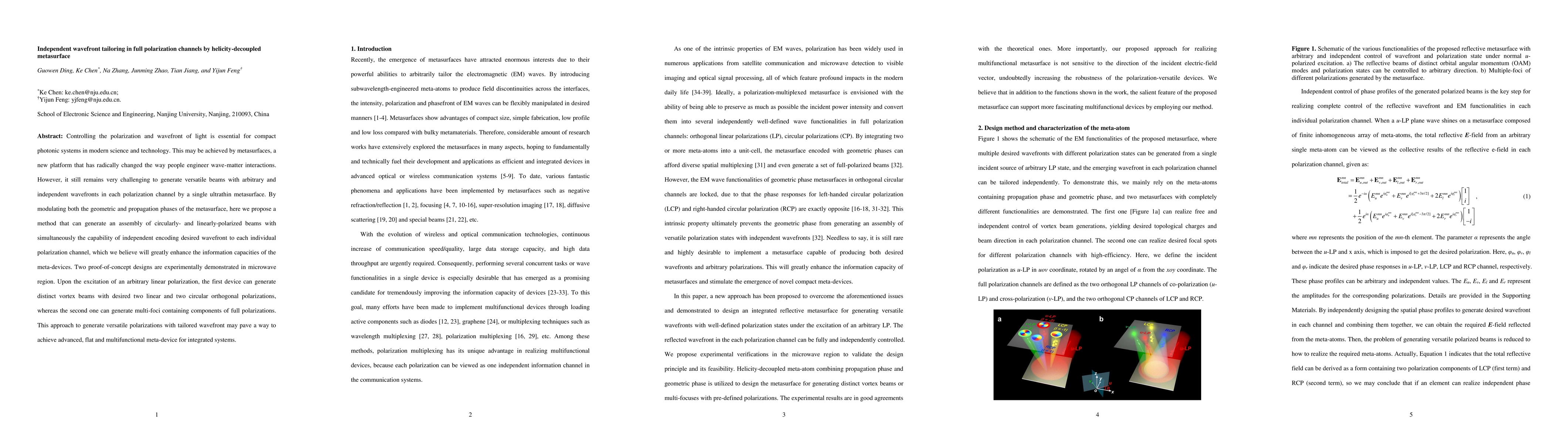 This paper proposes a helicity-decoupled metasurface that can independently tailor wavefronts in full polarization channels, enabling the generation of versatile beams with desired wavefronts for each polarization. Experimental demonstrations in the microwave region show the potential for advanced, multifunctional meta-devices for integrated photonic systems.