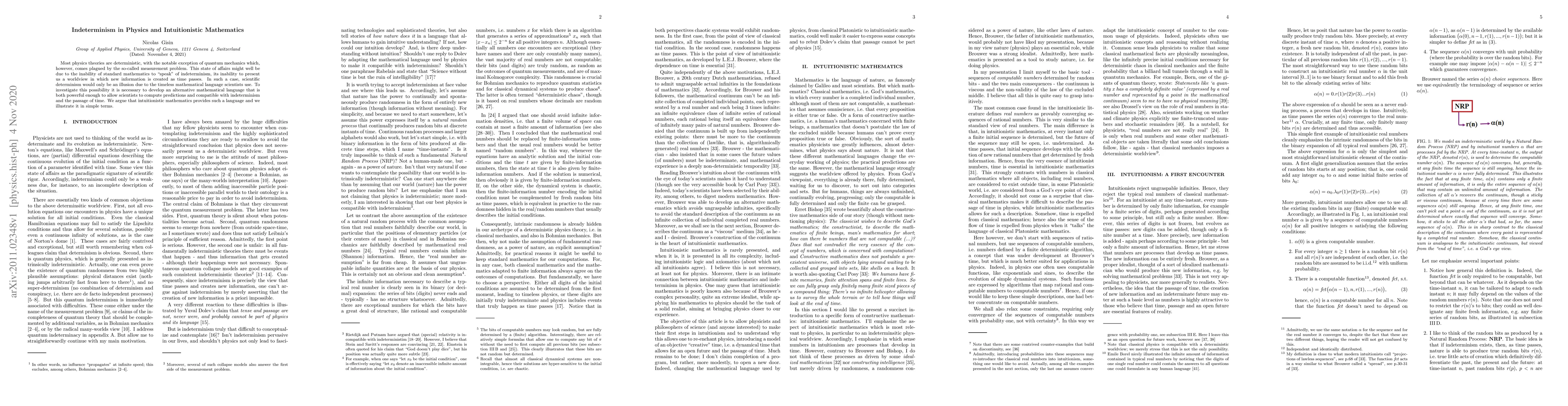 Most physics theories are deterministic, with the notable exception of quantum mechanics which, however, comes plagued by the so-called measurement problem. This state of affairs might well be due to the inability of standard mathematics to "speak" of indeterminism, its inability to present us a worldview in which new information is created as time passes. In such a case, scientific determinism would only be an illusion due to the timeless mathematical language scientists use. To investigate this possibility it is necessary to develop an alternative mathematical language that is both powerful enough to allow scientists to compute predictions and compatible with indeterminism and the passage of time. We argue that intuitionistic mathematics provides such a language and we illustrate it in simple terms.