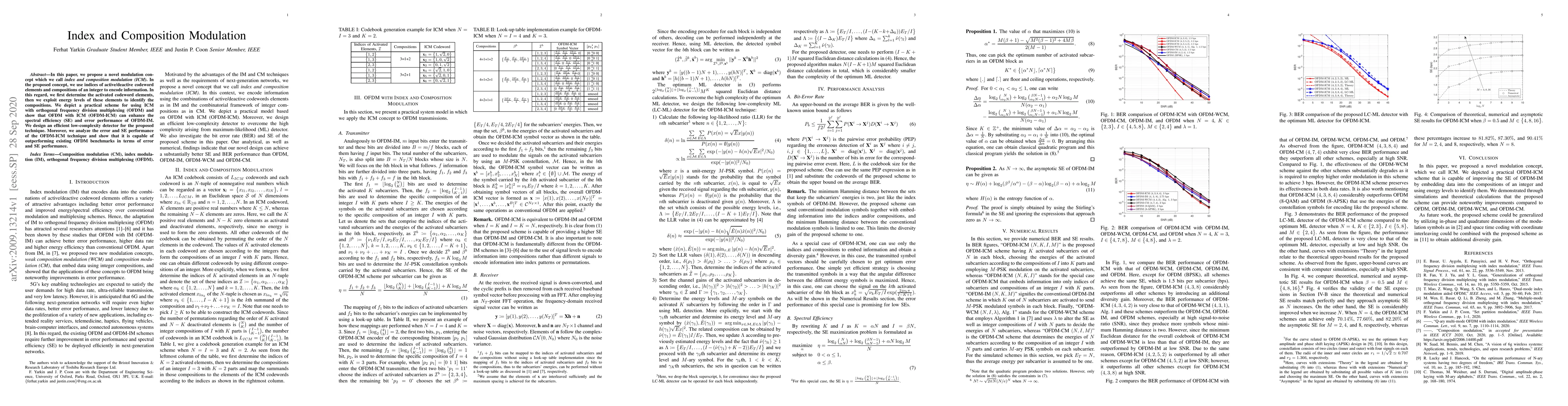 In this paper, we propose a novel modulation concept which we call \emph{index and composition modulation (ICM)}. In the proposed concept, we use indices of active/deactive codeword elements and compositions of an integer to encode information. In this regard, we first determine the activated codeword elements, then we exploit energy levels of these elements to identify the compositions. We depict a practical scheme for using ICM with orthogonal frequency division multiplexing (OFDM) and show that OFDM with ICM (OFDM-ICM) can enhance the spectral efficiency (SE) and error performance of OFDM-IM. We design an efficient low-complexity detector for the proposed technique. Moreover, we analyze the error and SE performance of the OFDM-ICM technique and show that it is capable of outperforming existing OFDM benchmarks in terms of error and SE performance.