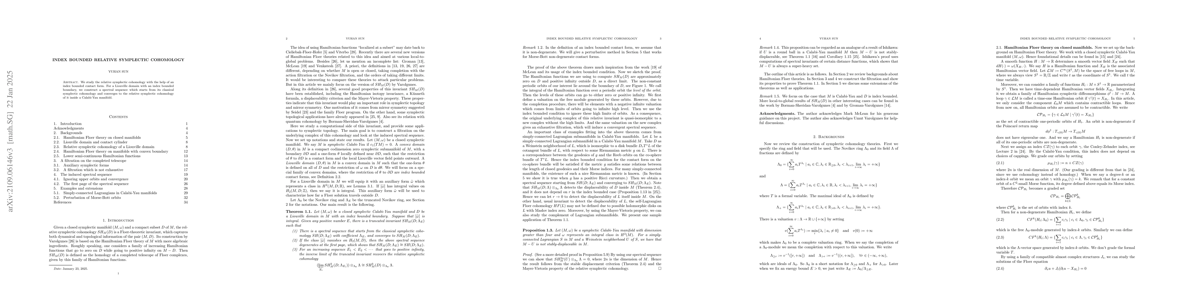 We study the relative symplectic cohomology with the help of an index bounded contact form. For a Liouville domain with an index bounded boundary, we construct a spectral sequence which starts from its classical symplectic cohomology and converges to the relative symplectic cohomology of it inside a Calabi-Yau manifold. In the appendix we compare the relative symplectic cohomology of a Liouville domain inside its completion with its classical symplectic cohomology. As an application, we obtain a version of the Viterbo isomorphism.