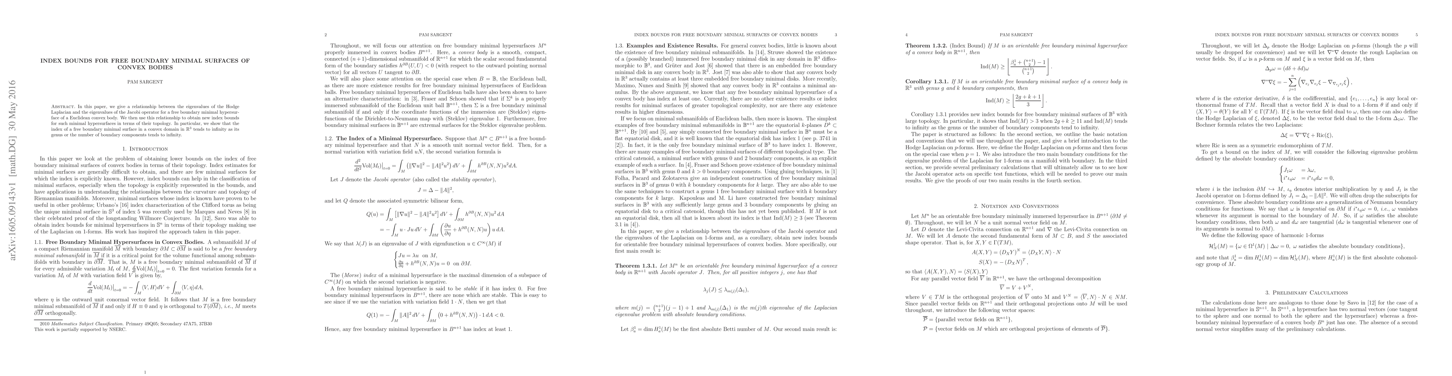 Researchers establish a link between eigenvalues of Hodge Laplacian and Jacobi operator for free boundary minimal surfaces of convex bodies, leading to new index bounds that show the index tends to infinity as genus or boundary components increase.