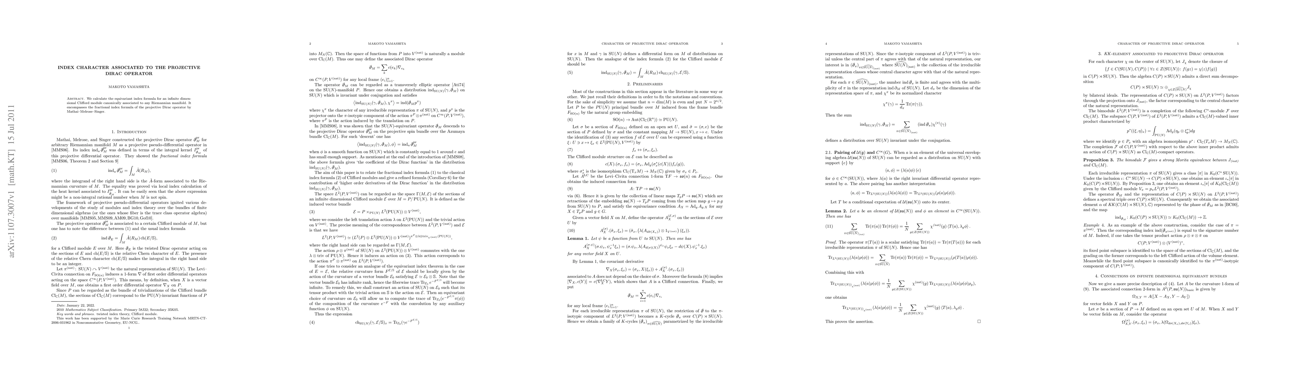 We calculate the equivariant index formula for an infinite dimensional Clifford module canonically associated to any Riemannian manifold. It encompasses the fractional index formula of the projective Dirac operator by Mathai--Melrose--Singer.