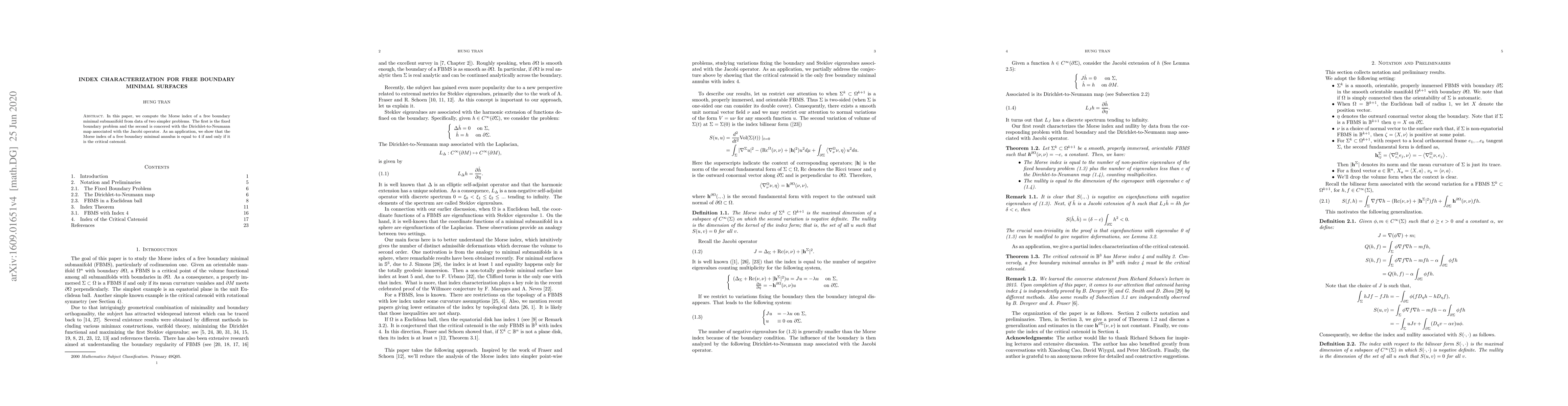 This paper computes the Morse index for free boundary minimal submanifolds using data from fixed boundary problems and the Dirichlet-to-Neumann map for Jacobi fields. It concludes that a free boundary minimal annulus has a Morse index of 4 if and only if it is the critical catenoid.