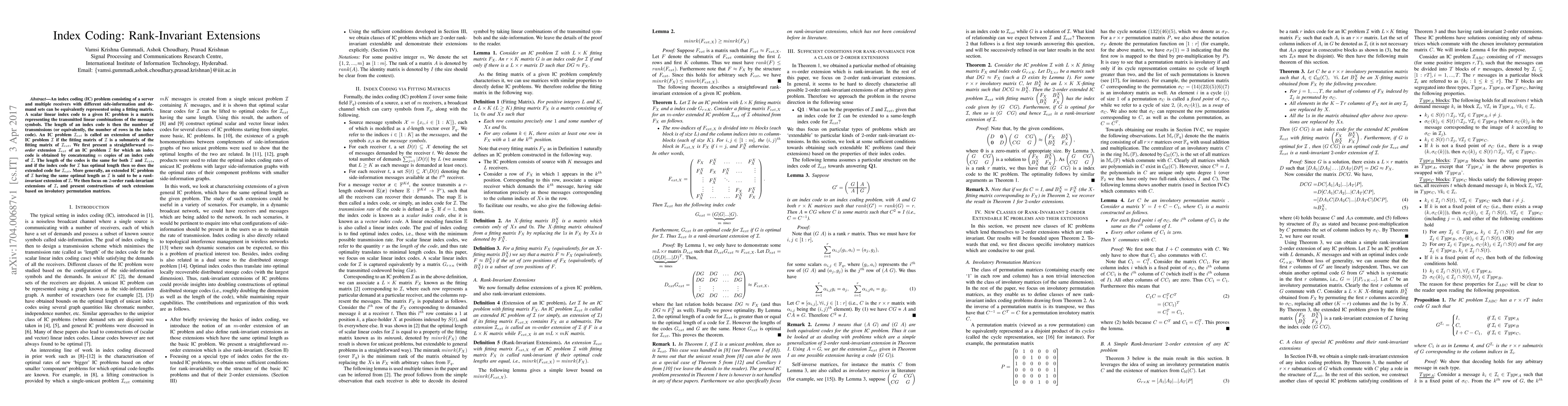 This paper introduces a method for creating rank-invariant extensions of index coding problems, maintaining the same optimal code length. It details a straightforward m-order extension and focuses on 2-order extensions using involutory permutation matrices, ensuring efficient transmission in communication networks.