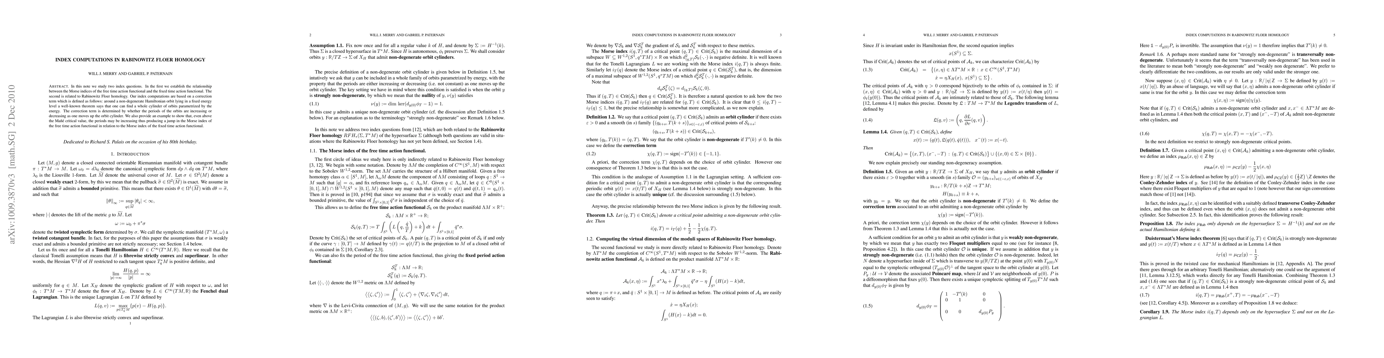 In this note we study two index questions. In the first we establish the relationship between the Morse indices of the free time action functional and the fixed time action functional. The second is related to Rabinowitz Floer homology. Our index computations are based on a correction term which is defined as follows: around a non-degenerate Hamiltonian orbit lying in a fixed energy level a well-known theorem says that one can find a whole cylinder of orbits parametrized by the energy. The correction term is determined by whether the periods of the orbits are increasing or decreasing as one moves up the orbit cylinder. We also provide an example to show that, even above the Ma\~n\'e critical value, the periods may be increasing thus producing a jump in the Morse index of the free time action functional in relation to the Morse index of the fixed time action functional.