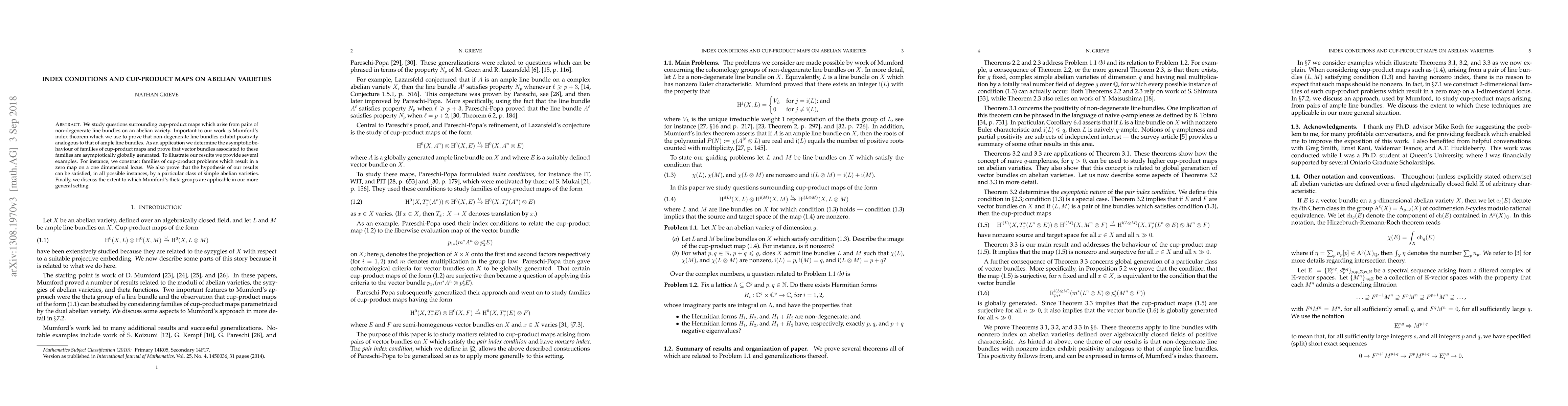 This paper investigates the cup-product maps from pairs of non-degenerate line bundles on abelian varieties, leveraging Mumford's index theorem to demonstrate their positivity. It determines the asymptotic behavior of these maps and proves that associated vector bundles are asymptotically globally generated, providing examples and discussing the applicability of Mumford's theta groups.