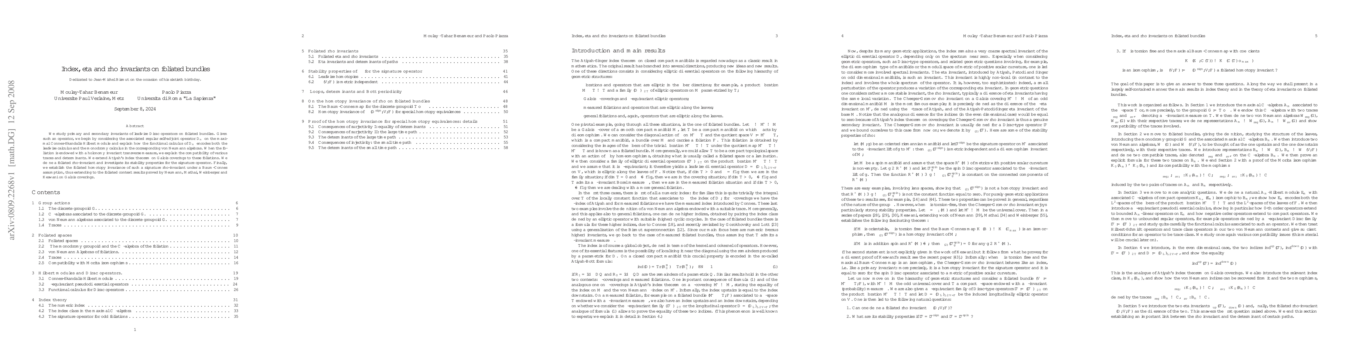This paper investigates primary and secondary invariants of leafwise Dirac operators on foliated bundles, extending Atiyah's index theorem and defining a foliated rho-invariant. It establishes the foliated homotopy invariance of the signature rho-invariant under a Baum-Connes assumption.