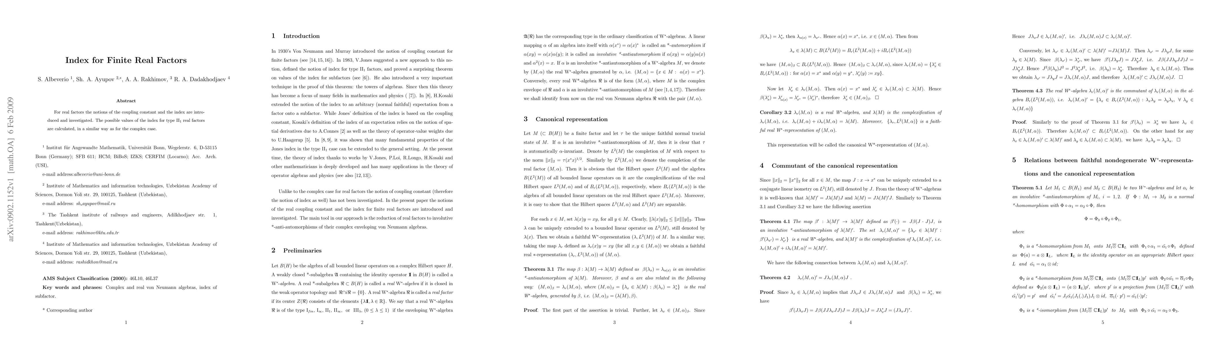 For real factors the notions of the coupling constant and the index are introduced and investigated. The possible values of the index for type II$_1$ real factors are calculated, in a similar way as for the complex case.