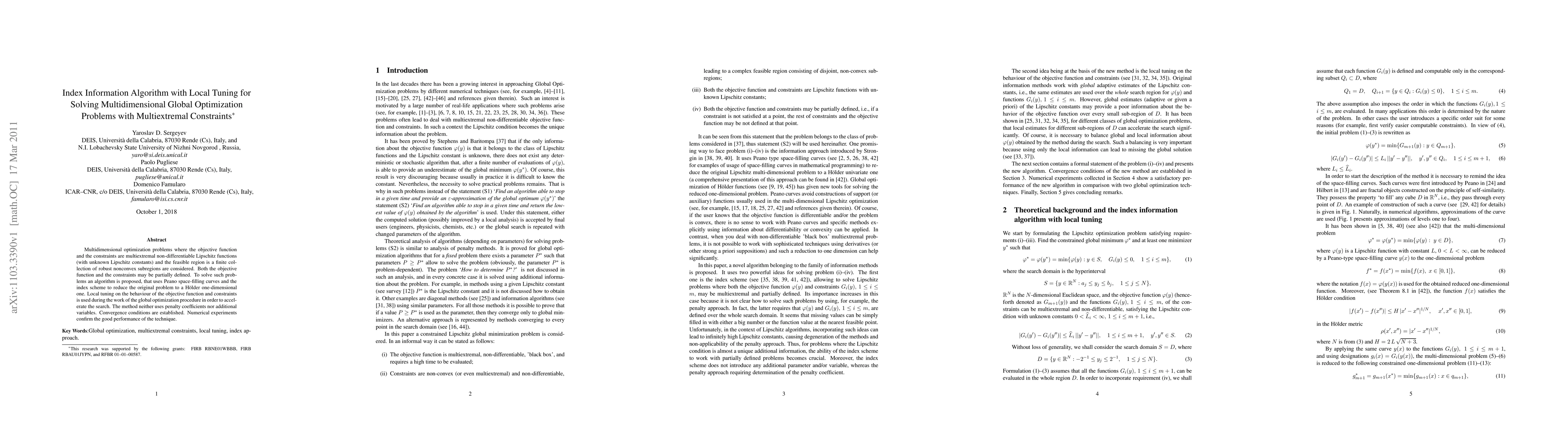 Multidimensional optimization problems where the objective function and the constraints are multiextremal non-differentiable Lipschitz functions (with unknown Lipschitz constants) and the feasible region is a finite collection of robust nonconvex subregions are considered. Both the objective function and the constraints may be partially defined. To solve such problems an algorithm is proposed, that uses Peano space-filling curves and the index scheme to reduce the original problem to a H\"{o}lder one-dimensional one. Local tuning on the behaviour of the objective function and constraints is used during the work of the global optimization procedure in order to accelerate the search. The method neither uses penalty coefficients nor additional variables. Convergence conditions are established. Numerical experiments confirm the good performance of the technique.
