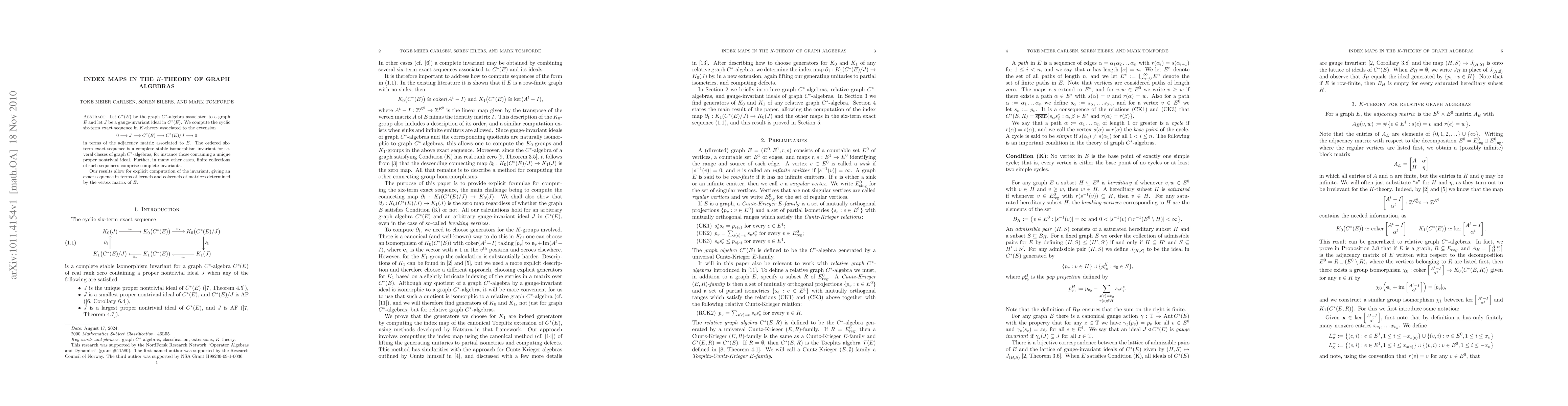 Let $C^*(E)$ be the graph $C^*$-algebra associated to a graph E and let J be a gauge invariant ideal in $C^*(E)$. We compute the cyclic six-term exact sequence in $K$-theory of the associated extension in terms of the adjacency matrix associated to $E$. The ordered six-term exact sequence is a complete stable isomorphism invariant for several classes of graph $C^*$-algebras, for instance those containing a unique proper nontrivial ideal. Further, in many other cases, infinite collections of such sequences comprise complete invariants. Our results allow for explicit computation of the invariant, giving an exact sequence in terms of kernels and cokernels of matrices determined by the vertex matrix of $E$.