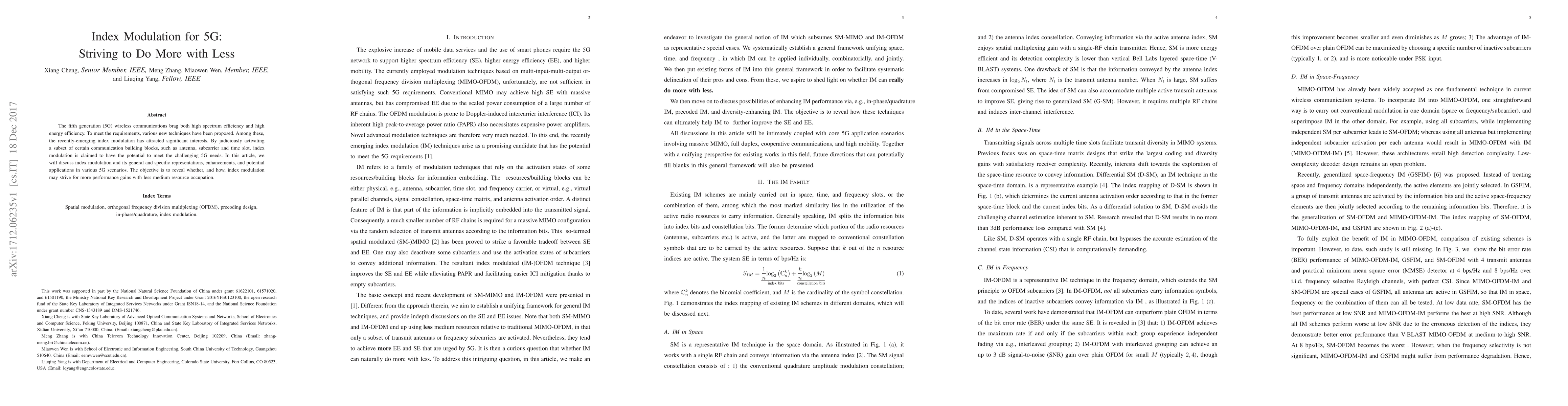 This paper explores index modulation as a novel technique for 5G wireless communications, aiming to achieve high spectrum and energy efficiency. It discusses various forms and enhancements of index modulation, assessing its potential to deliver superior performance with minimal resource usage.