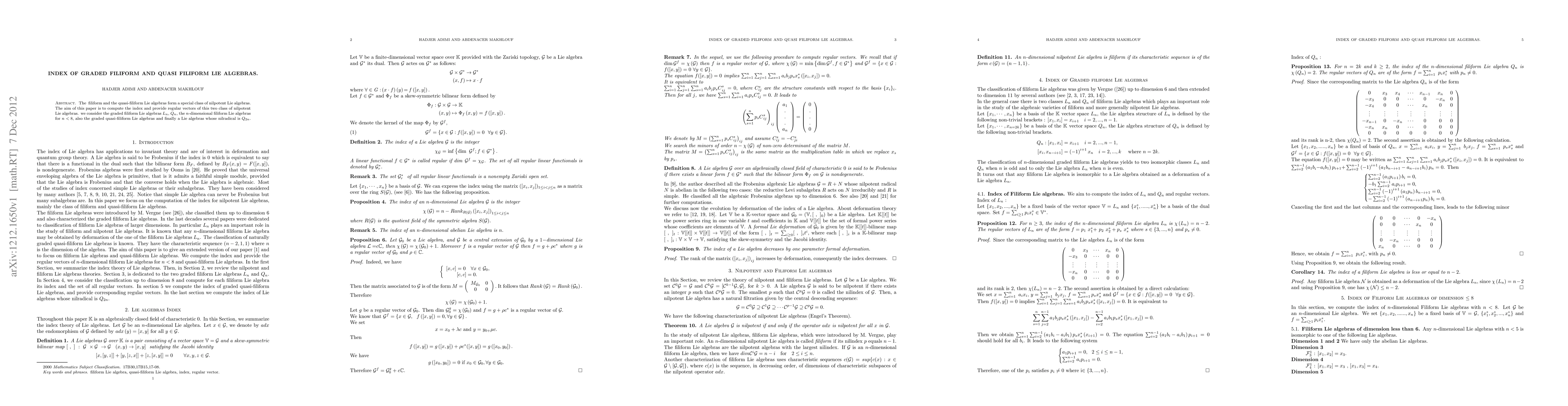 This paper computes the index and identifies regular vectors for $n$-dimensional filiform ($L_n$) and quasi-filiform ($Q_n$) Lie algebras for $n < 8$, as well as examining graded quasi-filiform Lie algebras and those with a nilradical of $Q_{2n}$.