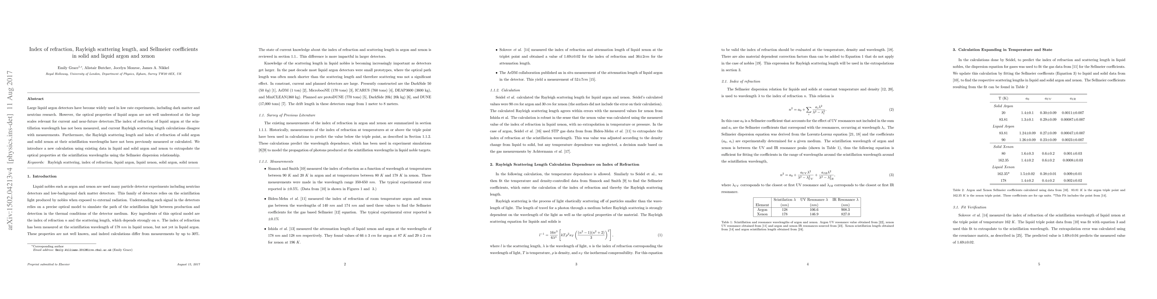 This paper aims to improve the understanding of the optical properties of liquid and solid argon and xenon, crucial for large liquid argon detectors used in low-rate experiments like dark matter and neutrino research. It introduces a new calculation method using the Sellmeier dispersion relationship to extrapolate the index of refraction, Rayleigh scattering length, and Sellmeier coefficients at scintillation wavelengths.