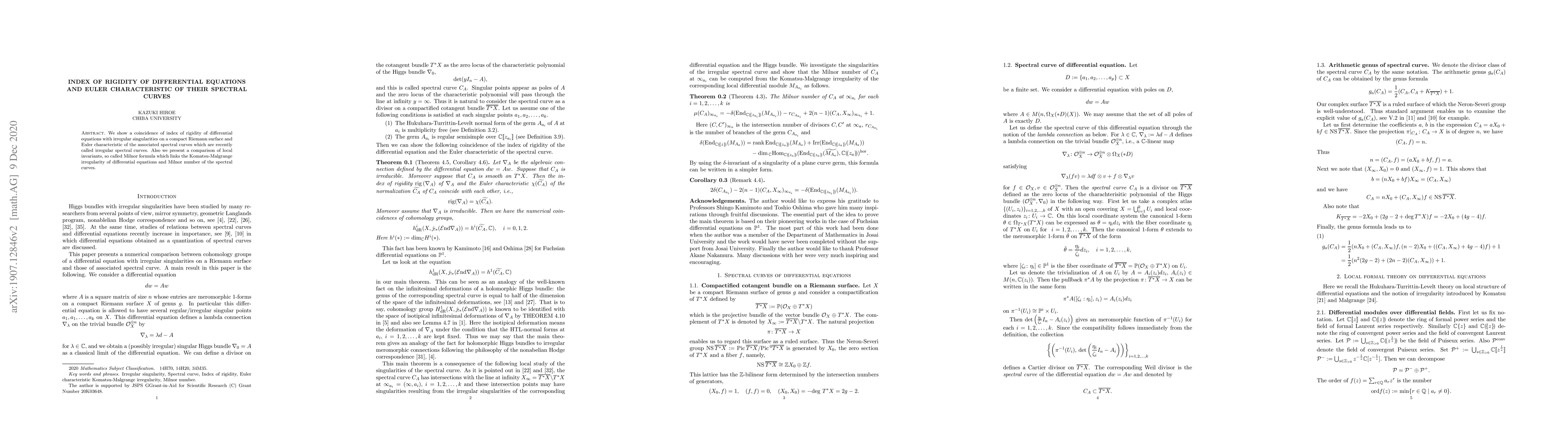 Researchers find a connection between rigidity of differential equations and Euler characteristic of their spectral curves, shedding light on irregular singularities in mathematical equations.