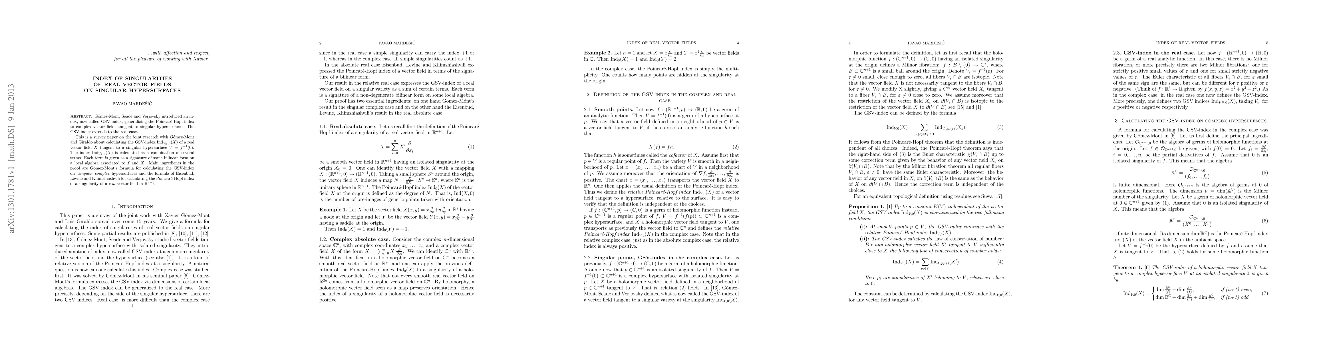This paper surveys joint research on calculating the GSV-index of real vector fields tangent to singular hypersurfaces, extending the Poincaré-Hopf index. The GSV-index is computed using terms derived from bilinear forms on local algebras, leveraging Gómez-Mont's and Eisenbud et al.'s formulas.