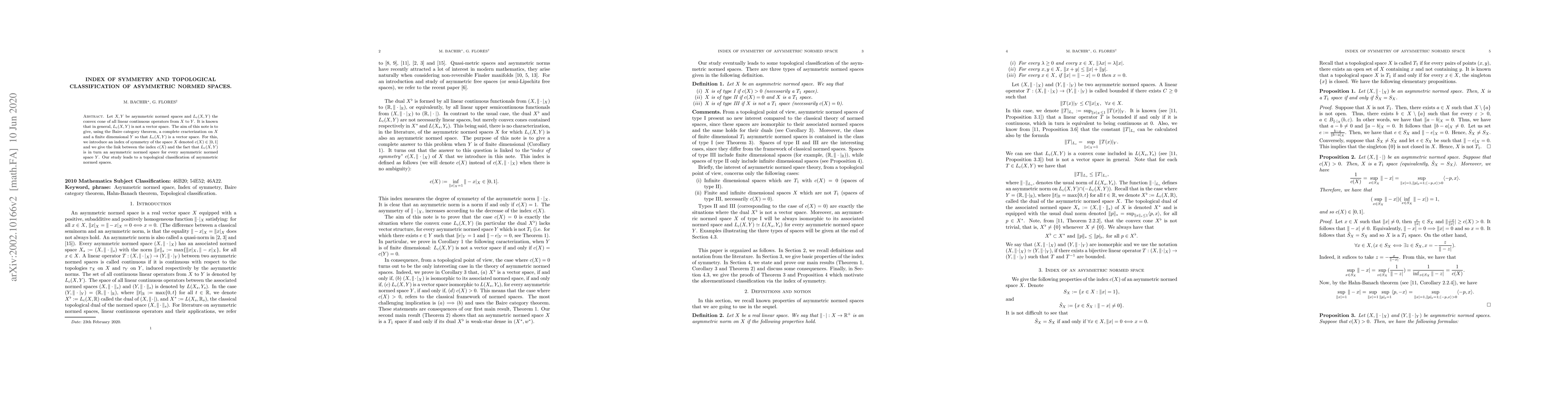 This paper introduces an index of symmetry for asymmetric normed spaces and proves that if the convex cone of linear continuous operators from such a space X to another asymmetric normed space Y forms a vector space, then X is isomorphic to its associated normed space. The study concludes with a topological classification of these asymmetric normed spaces.