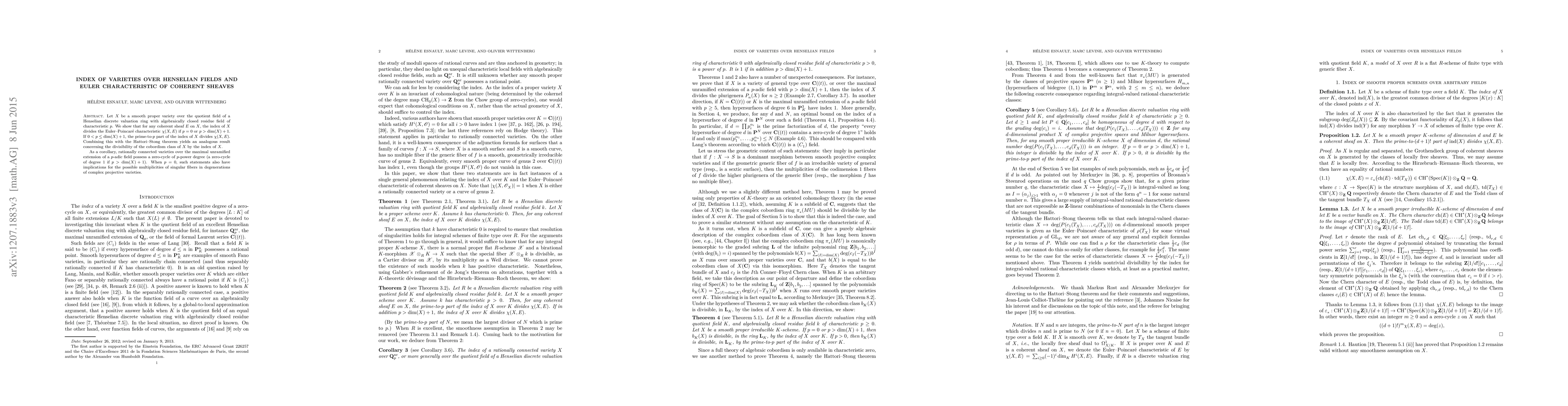 A study on smooth proper varieties over Henselian fields shows that for certain coherent sheaves, their index divides the Euler characteristic or a part of it under specific conditions.