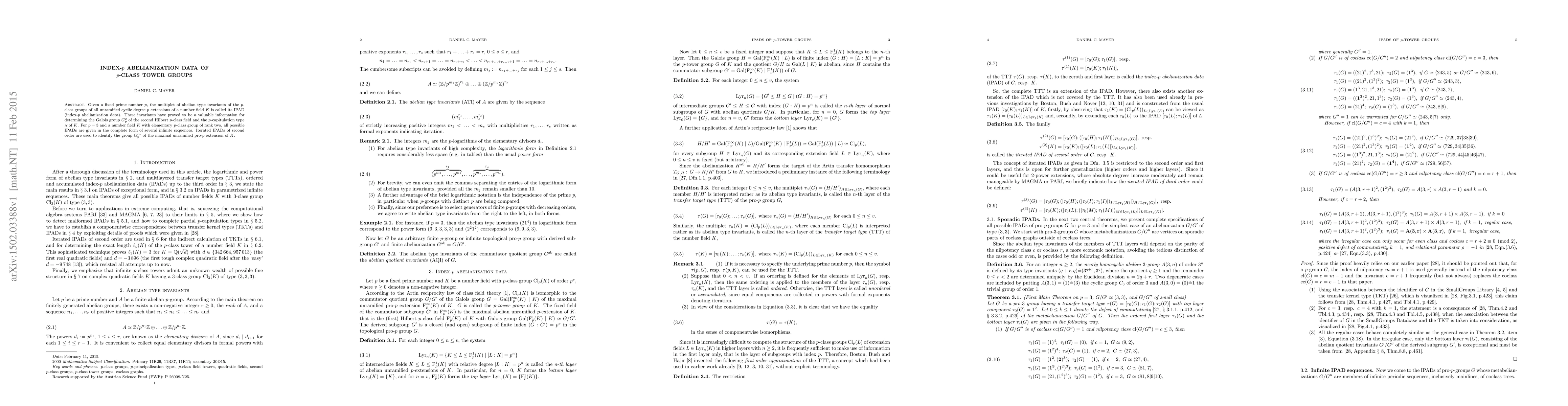 Given a fixed prime number \(p\), the multiplet of abelian type invariants of the \(p\)-class groups of all unramified cyclic degree \(p\) extensions of a number field \(K\) is called its IPAD (index-\(p\) abelianization data). These invariants have proved to be a valuable information for determining the Galois group \(G_p^2\) of the second Hilbert \(p\)-class field and the \(p\)-capitulation type \(\varkappa\) of \(K\). For \(p=3\) and a number field \(K\) with elementary \(p\)-class group of rank two, all possible IPADs are given in the complete form of several infinite sequences. Iterated IPADs of second order are used to identify the group \(G_p^\infty\) of the maximal unramified pro-\(p\) extension of \(K\).
