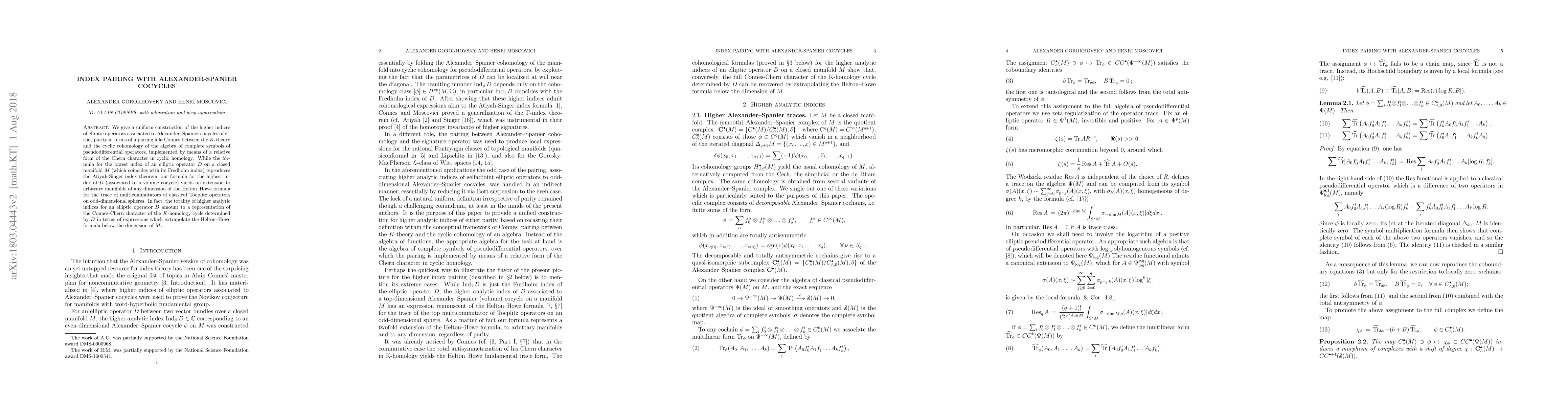 We give a uniform construction of the higher indices of elliptic operators associated to Alexander-Spanier cocycles of either parity in terms of a pairing a la Connes between the K-theory and the cyclic cohomology of the algebra of complete symbols of pseudodifferential operators, implemented by means of a relative form of the Chern character in cyclic homology. While the formula for the lowest index of an elliptic operator D on a closed manifold M (which coincides with its Fredholm index) reproduces the Atiyah-Singer index theorem, our formula for the highest index of D (associated to a volume cocycle) yields an extension to arbitrary manifolds of any dimension of the Helton-Howe formula for the trace of multicommutators of classical Toeplitz operators on odd-dimensional spheres. In fact, the totality of higher analytic indices for an elliptic operator D amount to a representation of the Connes-Chern character of the K-homology cycle determined by D in terms of expressions which extrapolate the Helton-Howe formula below the dimension of M.