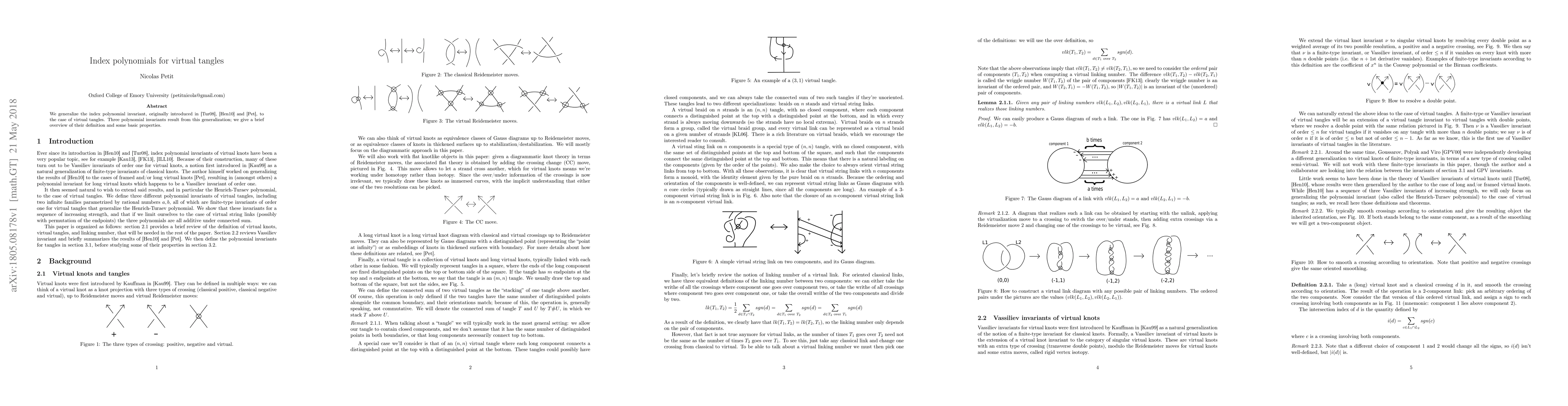 This paper generalizes the index polynomial invariant to virtual tangles, resulting in three new polynomial invariants. It provides a brief overview of their definitions and explores some fundamental properties.