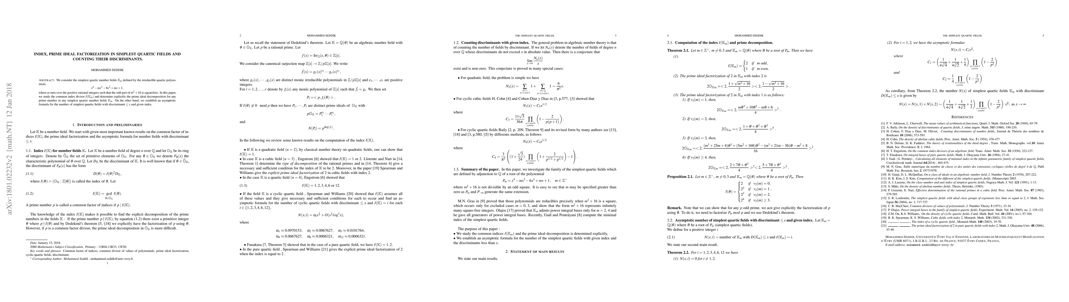 This paper investigates the simplest quartic number fields $\mathbb{K}_m$ defined by specific quartic polynomials, focusing on the index divisor and prime ideal factorization. It also establishes an asymptotic formula for counting these fields by discriminant and index.