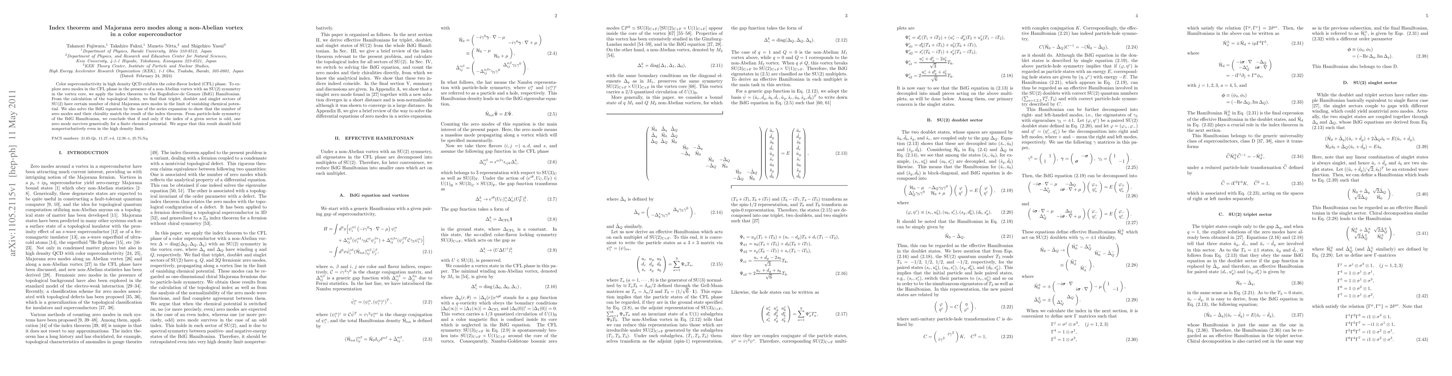 Color superconductivity in high density QCD exhibits the color-flavor locked (CFL) phase. To explore zero modes in the CFL phase in the presence of a non-Abelian vortex with an SU(2) symmetry in the vortex core, we apply the index theorem to the Bogoliubov-de Gennes (BdG) Hamiltonian. From the calculation of the topological index, we find that triplet, doublet and singlet sectors of SU(2) have certain number of chiral Majorana zero modes in the limit of vanishing chemical potential. We also solve the BdG equation by the use of the series expansion to show that the number of zero modes and their chirality match the result of the index theorem. From particle-hole symmetry of the BdG Hamiltonian, we conclude that if and only if the index of a given sector is odd, one zero mode survives generically for a finite chemical potential. We argue that this result should hold nonperturbatively even in the high density limit.