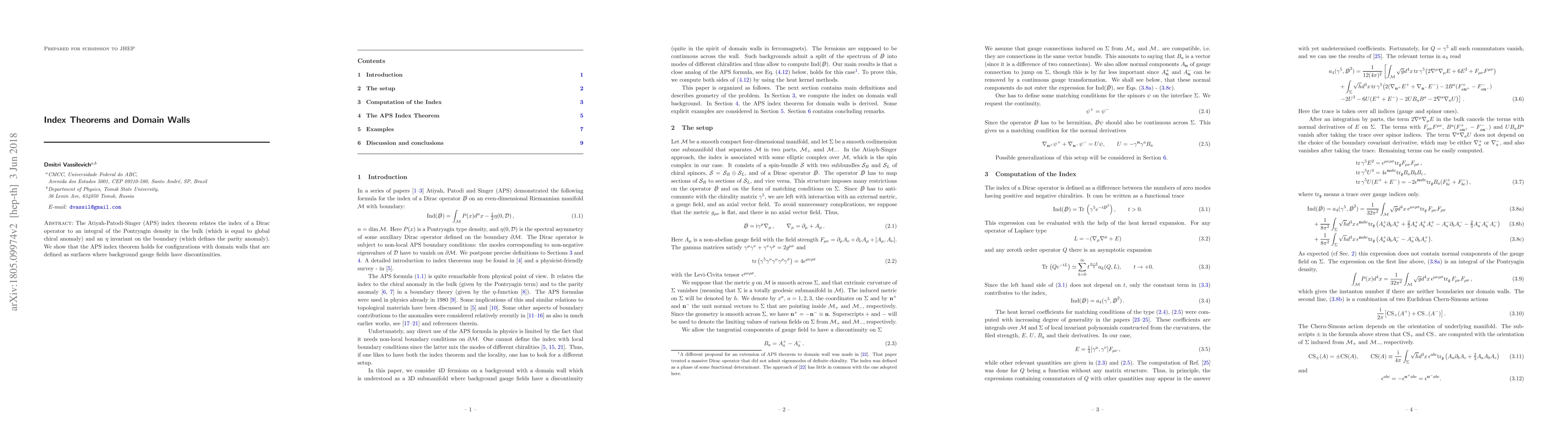 The Atiyah-Patodi-Singer index theorem holds for configurations with domain walls, relating the index of a Dirac operator to an integral of the Pontryagin density in the bulk and a parity anomaly on the boundary.