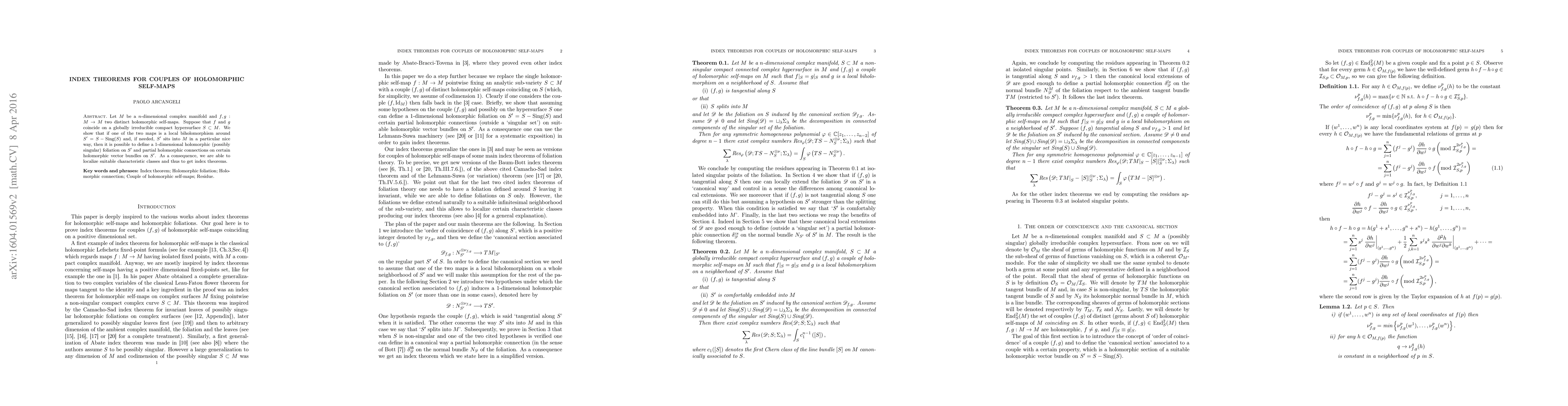 This paper establishes index theorems for holomorphic self-maps of a complex manifold that coincide on a compact hypersurface, provided one map is a local biholomorphism around the smooth part of the hypersurface. It uses foliations and connections to localize characteristic classes.