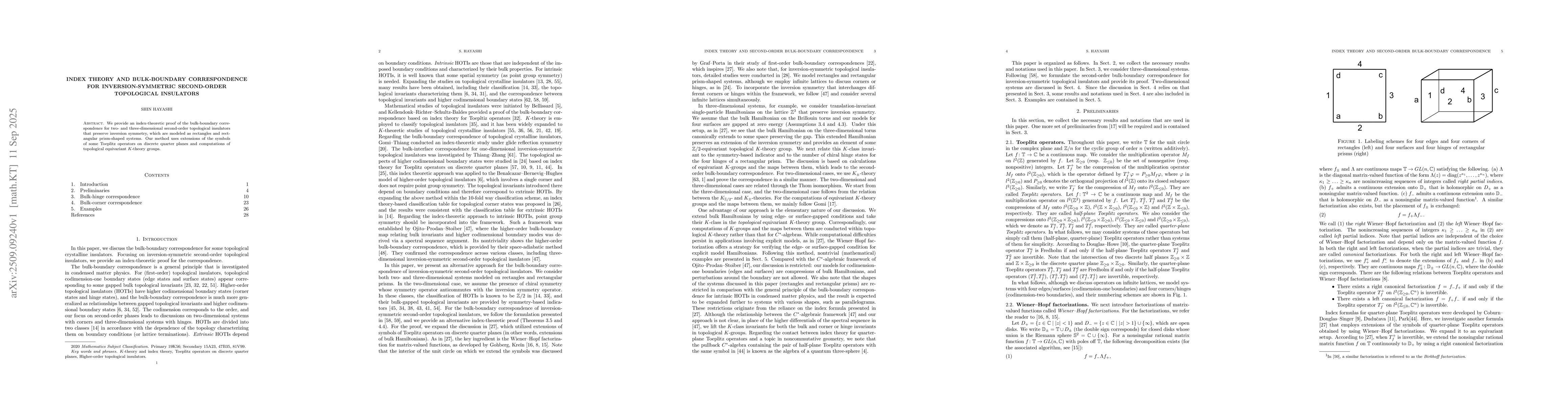 We provide an index-theoretic proof of the bulk-boundary correspondence for two- and three-dimensional second-order topological insulators that preserve inversion symmetry, which are modeled as rectangles and rectangular prism-shaped systems. Our method uses extensions of the symbols of some Toeplitz operators on discrete quarter planes and computations of topological equivariant K-theory groups.