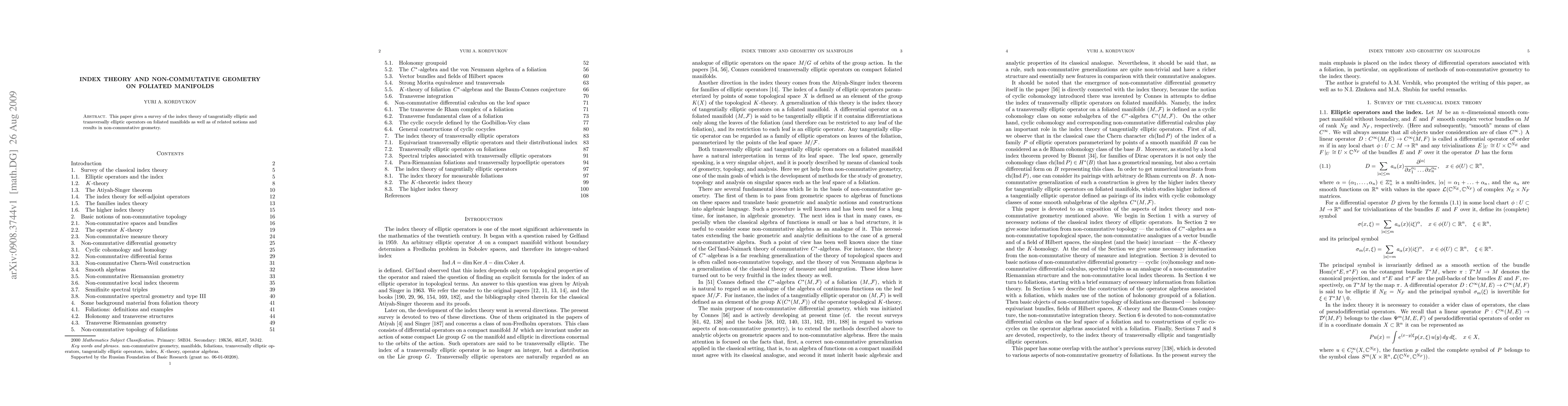 This paper surveys index theory for tangentially and transversally elliptic operators on foliated manifolds, alongside related concepts and findings in non-commutative geometry. It provides insights into the mathematical structures and relationships in this advanced field.