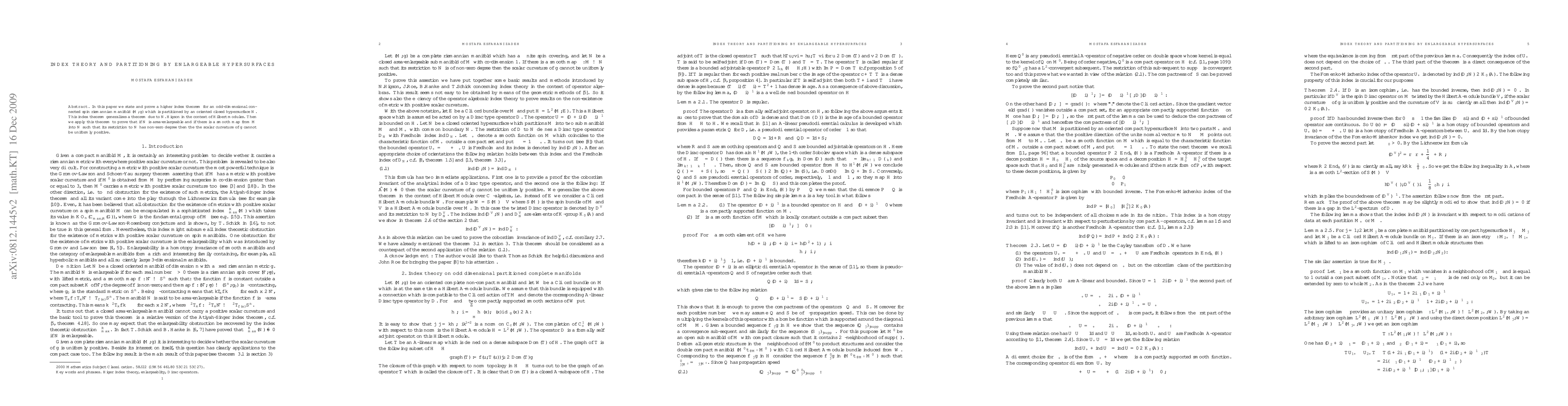 In this paper we state and prove a higher index theorem for an odd-dimensional connected spin riemannian manifold $(M,g)$ which is partitioned by an oriented closed hypersurface $N$. This index theorem generalizes a theorem due to N. Higson and J. Roe in the context of Hilbert modules. Then we apply this theorem to prove that if $N$ is area-enlargeable and if there is a smooth map from $M$ into $N$ such that its restriction to $N$ has non-zero degree then the the scalar curvature of $g$ cannot be uniformly positive.