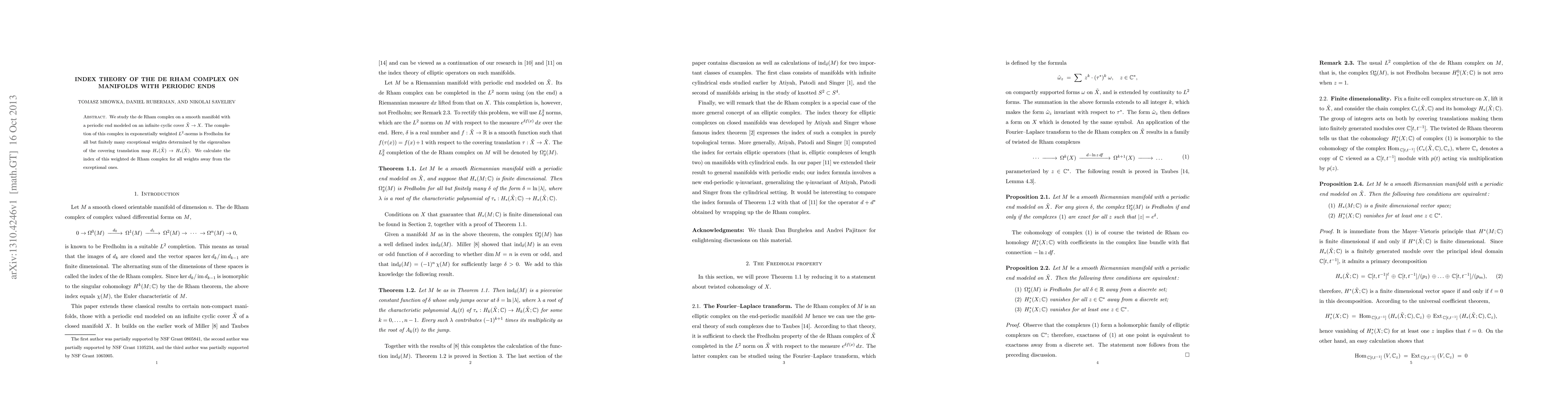 We study the de Rham complex on a smooth manifold with a periodic end modeled on an infinite cyclic cover X' \to X. The completion of this complex in exponentially weighted L^2-norms is Fredholm for all but finitely many exceptional weights determined by the eigenvalues of the covering translation map H_*(X') \to H_*(X'). We calculate the index of this weighted de Rham complex for all weights away from the exceptional ones.