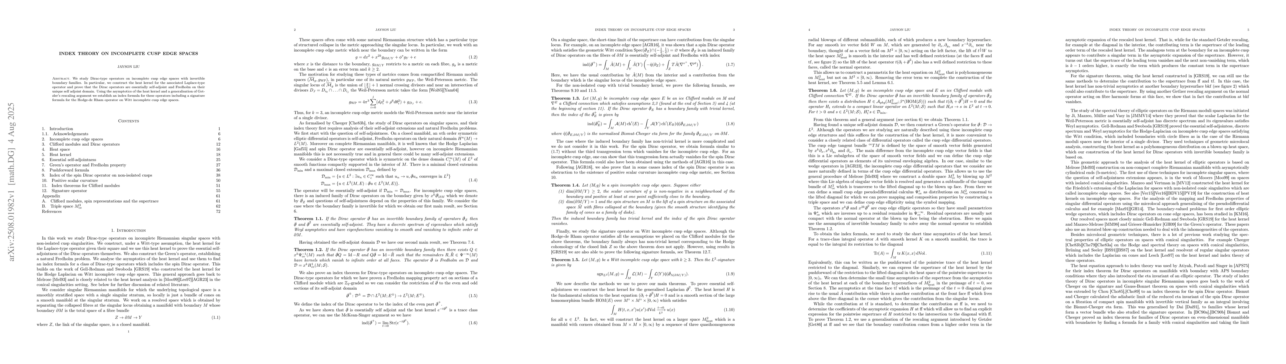 We study Dirac-type operators on incomplete cusp edge spaces with invertible boundary families. In particular, we construct the heat kernel for the associated Laplace-type operator and prove that the Dirac operators are essentially self-adjoint and Fredholm on their unique self adjoint domain. Using the asymptotics of the heat kernel and a generalisation of Getzler's rescaling argument we establish an index formula for these operators including a signature formula for the Hodge-de Rham operator on Witt incomplete cusp edge spaces.