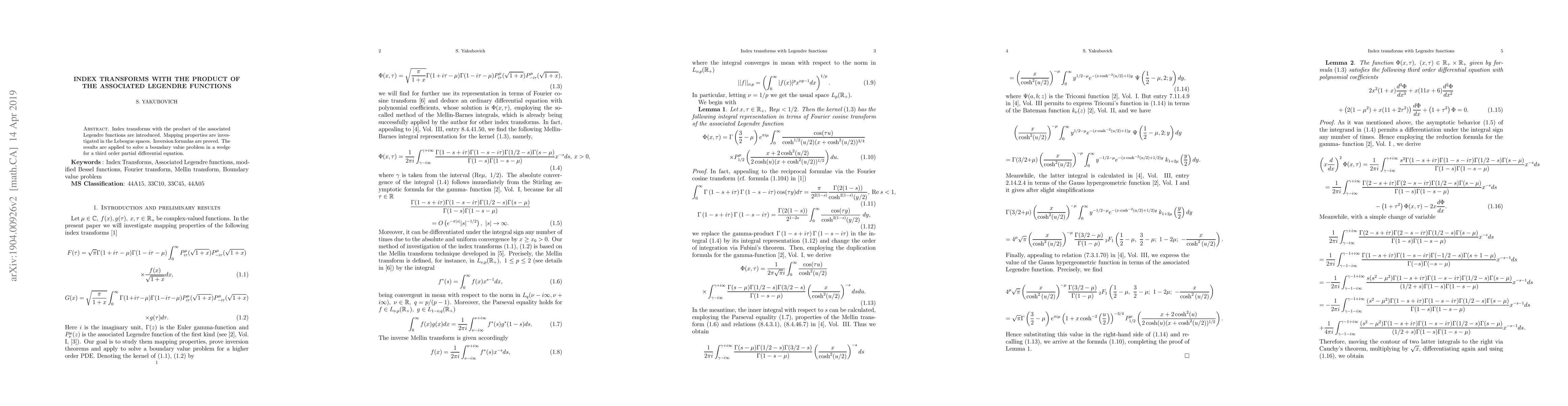 This paper introduces index transforms involving the product of associated Legendre functions, explores their mapping properties in Lebesgue spaces, and proves inversion formulas. The findings are applied to solve a boundary value problem in a wedge for a third-order partial differential equation.