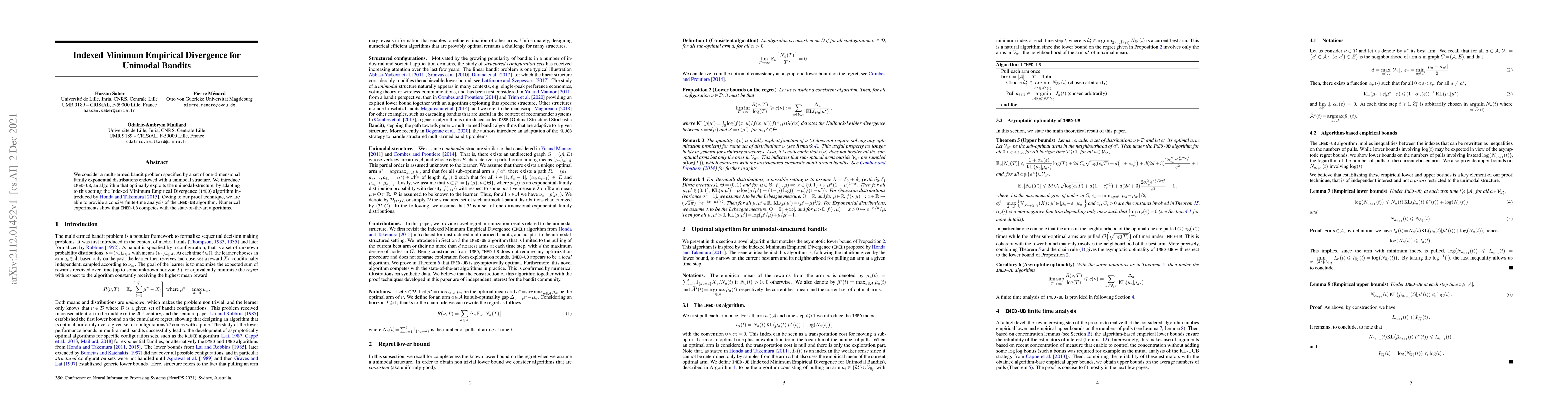 We consider a multi-armed bandit problem specified by a set of one-dimensional family exponential distributions endowed with a unimodal structure. We introduce IMED-UB, a algorithm that optimally exploits the unimodal-structure, by adapting to this setting the Indexed Minimum Empirical Divergence (IMED) algorithm introduced by Honda and Takemura [2015]. Owing to our proof technique, we are able to provide a concise finite-time analysis of IMED-UB algorithm. Numerical experiments show that IMED-UB competes with the state-of-the-art algorithms.